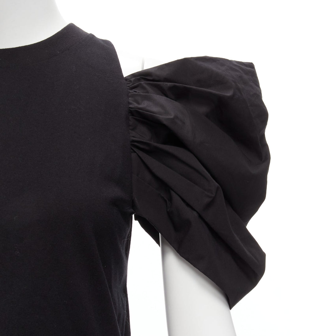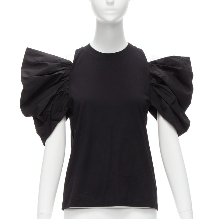 ALEXANDER MCQUEEN 2021 black cotton cold shoulder puff sleeves top IT38 XS