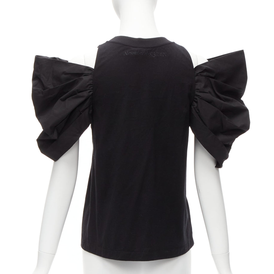 new ALEXANDER MCQUEEN 2021 black cotton cold shoulder puff sleeves embroidered logo top IT38 XS