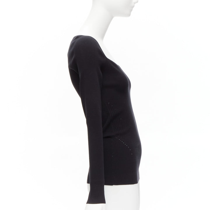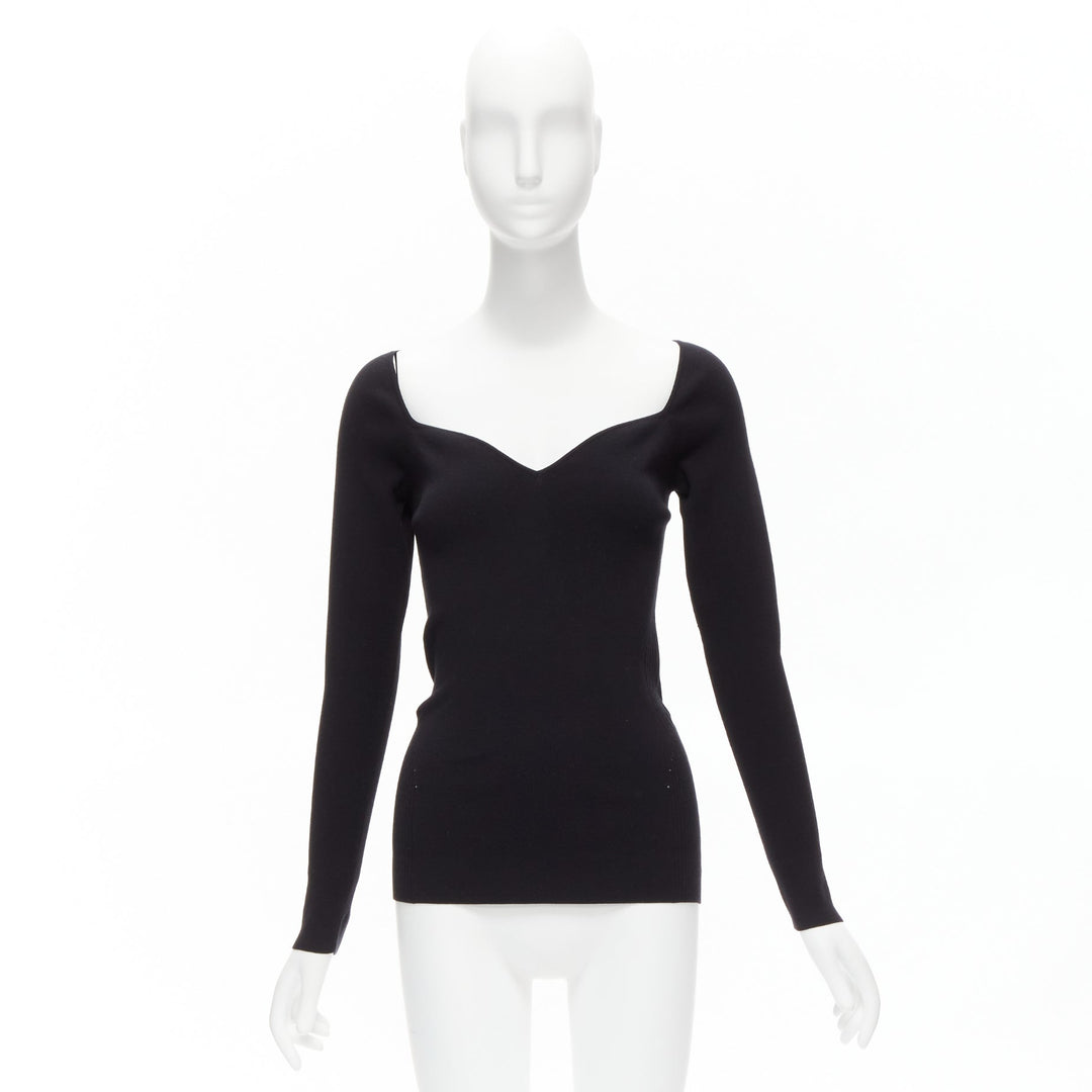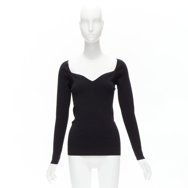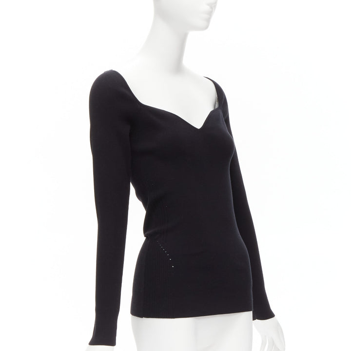 new BALENCIAGA Demna black modal knit sweetheart neckline knitted top FR40 L