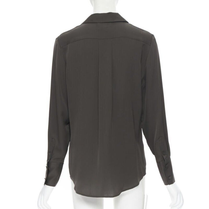 new FRAME Dark Moss green 100% silk spread collar popover shirt blouse XS