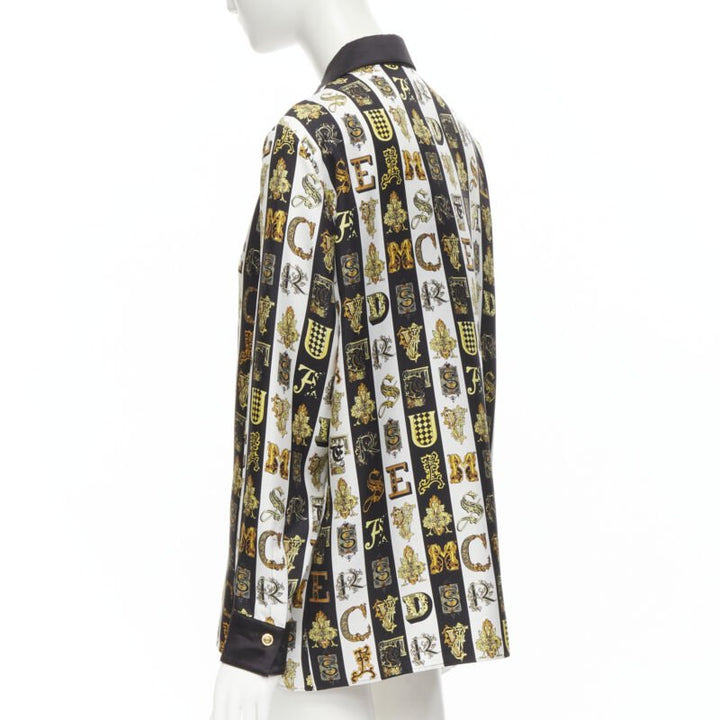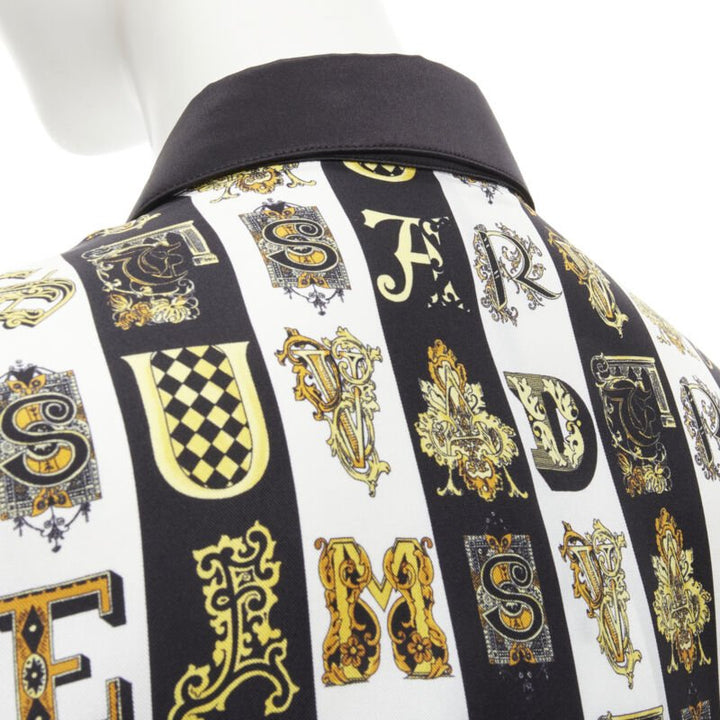 new VERSACE Virtus Alphabet black gold Barocco Medusa button silk shirt IT42 M