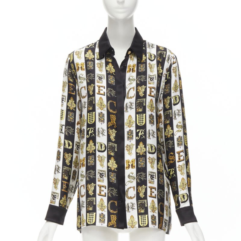 VERSACE Virtus Alphabet black gold Barocco Medusa button silk shirt IT42 M