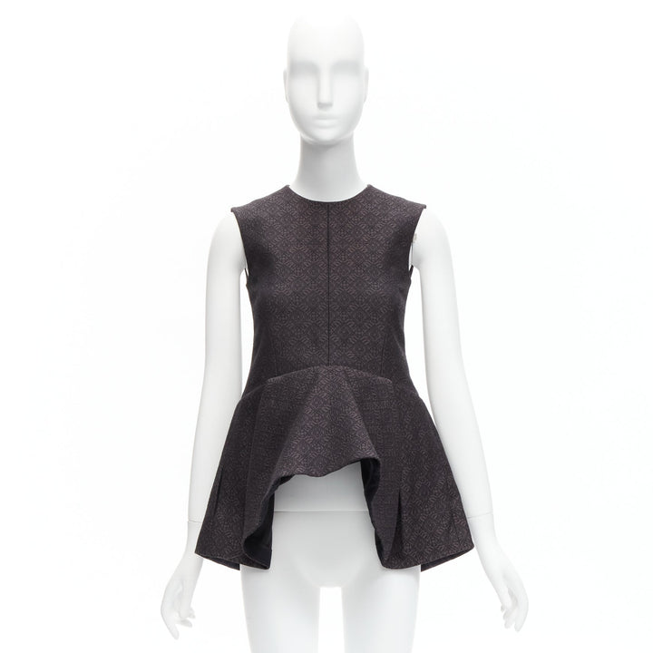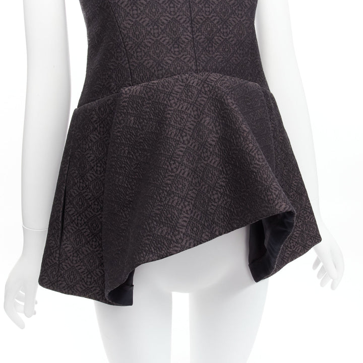 OLD CELINE Phoebe Philo black cotton jacquard waterfall peplum top FR34 XS