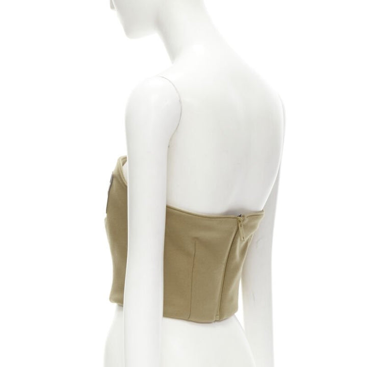PRADA 2018 brown Sports Logo rubber badge wool strapless bustier S