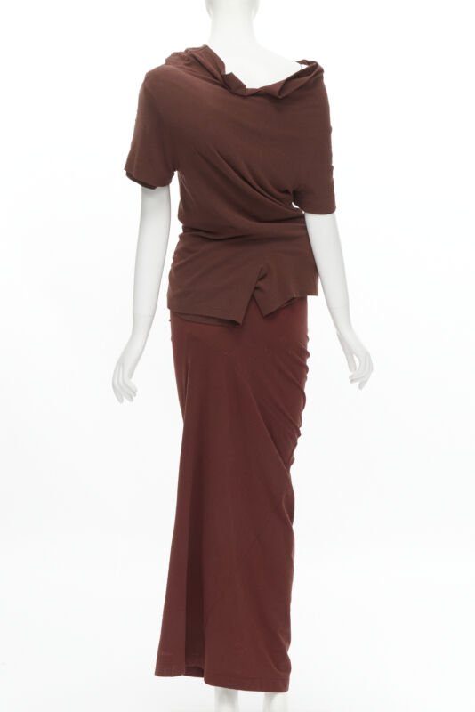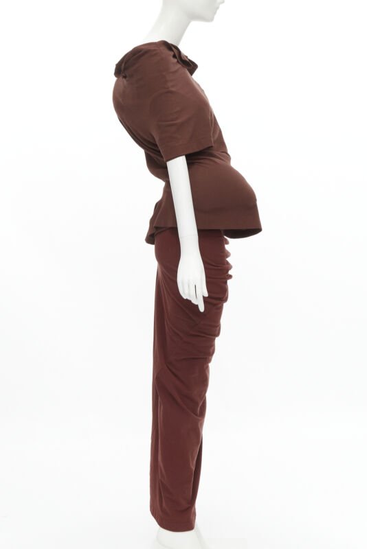 Extra Details: Iconic Lumps and Bumps top with cushion padded kidney stuffed into pockets that to hold them. Masterful and one of a kind construction. Draped neckline. Short sleeves. Asymmetric wrap draped skirt.
