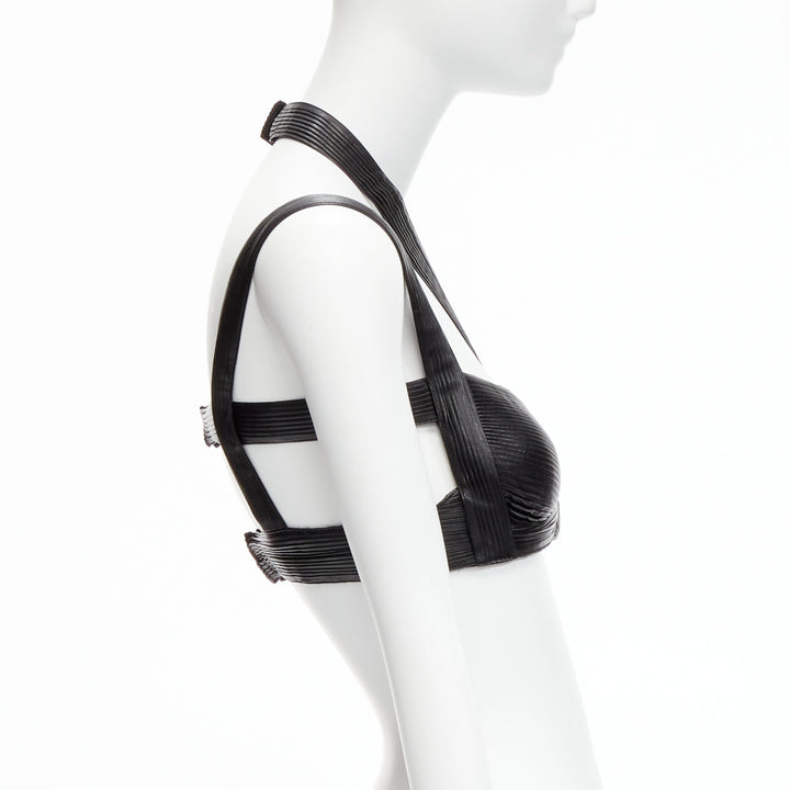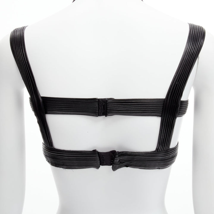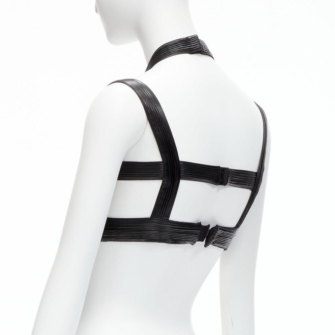 rare GIVENCHY Riccardo Tisci 2014 Runway black pleated leather harness bra top