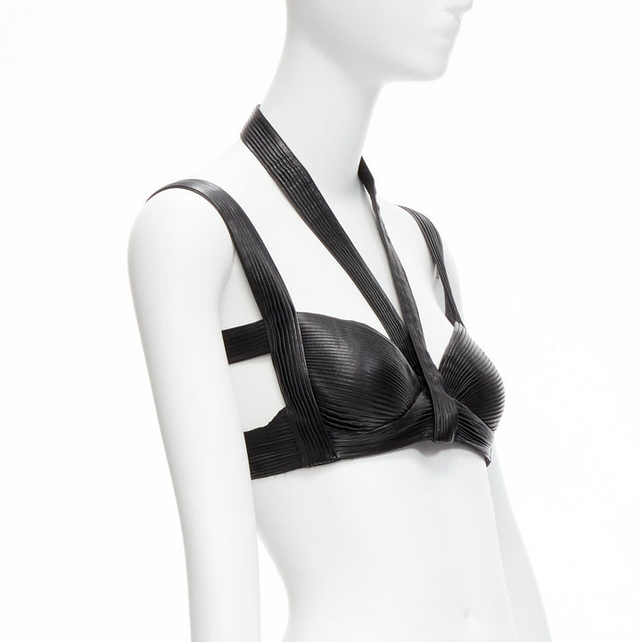 rare GIVENCHY Riccardo Tisci 2014 Runway black leather pleated halter harness bra top