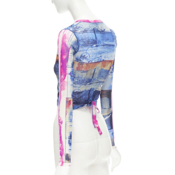 rare JEAN PAUL GAULTIER Soleil Vintage blue pink cityscape sheer wrap top S