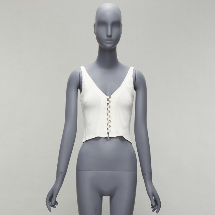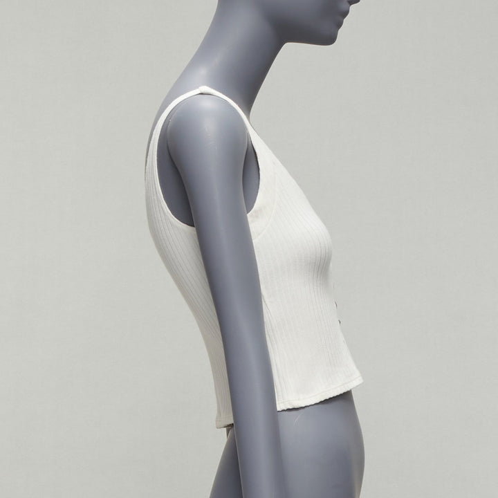 REFORMATION Giorgia cream ribbed shell button loops V neck tank top XS