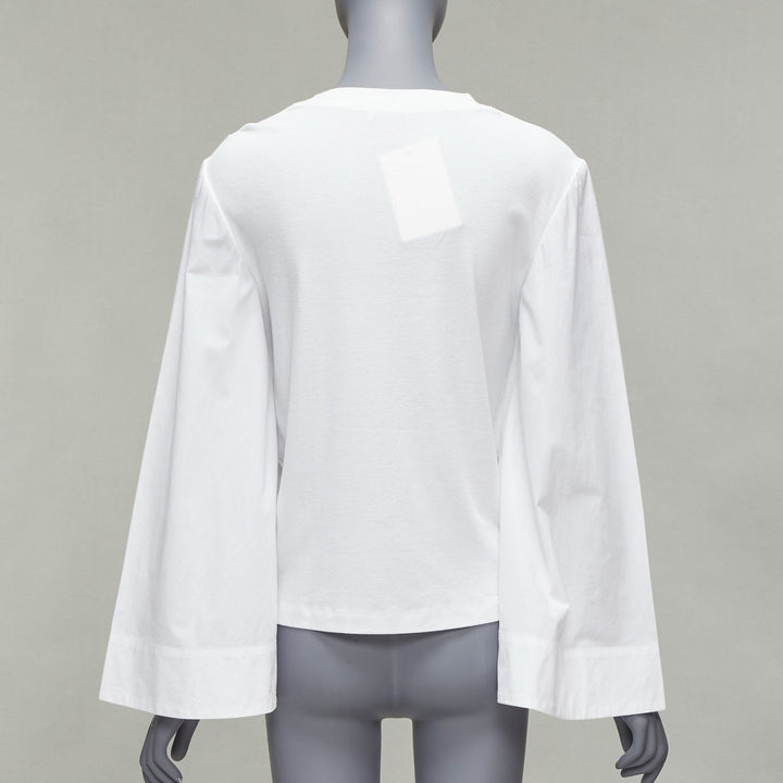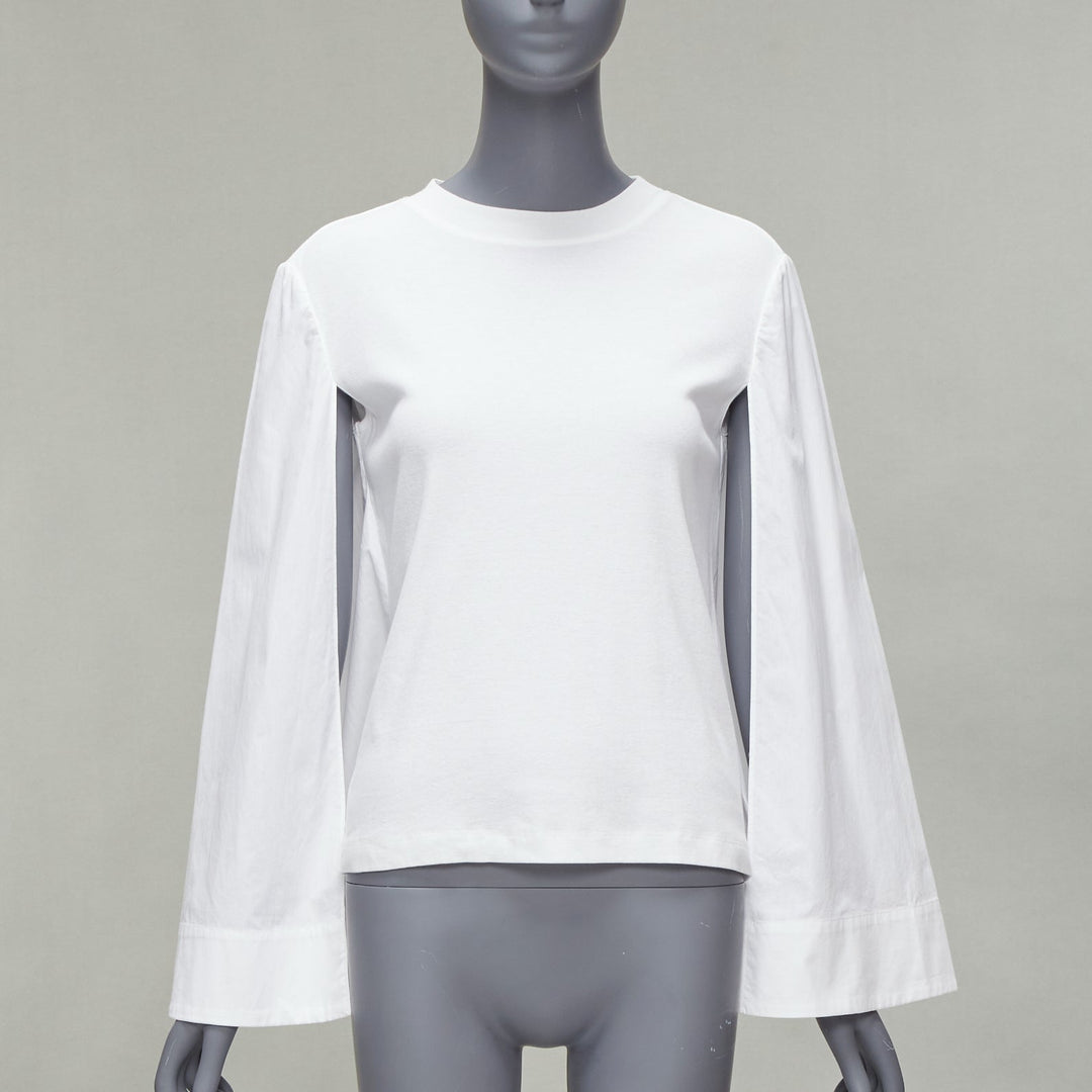 ROSETTA GETTY white 100% cotton woven cape sleeves knitted top XS