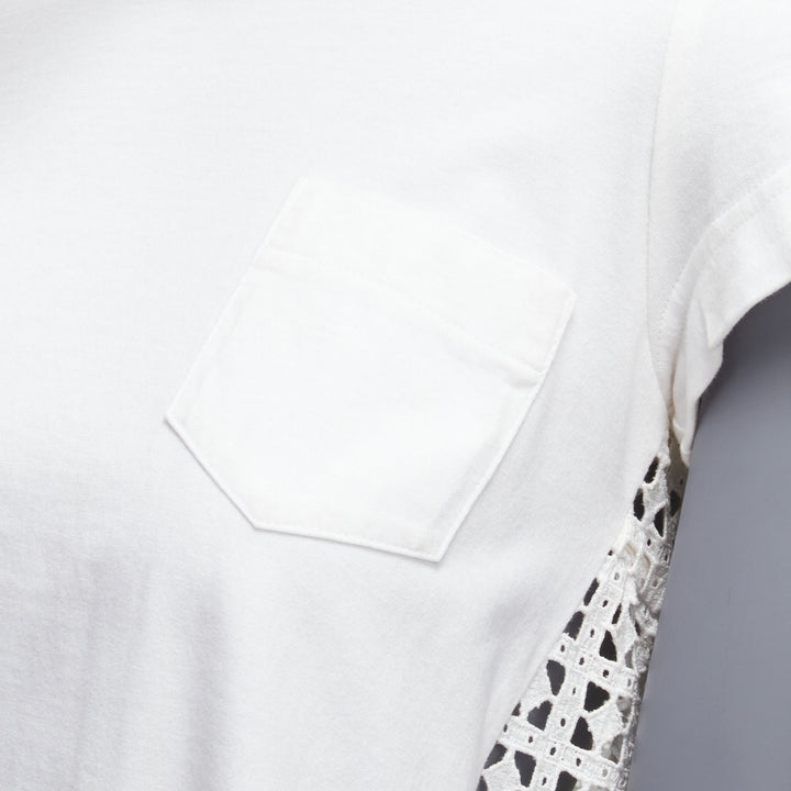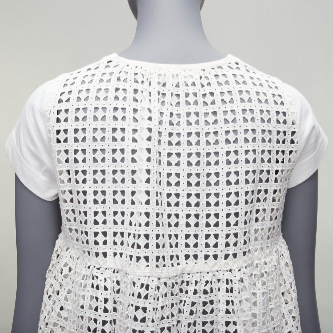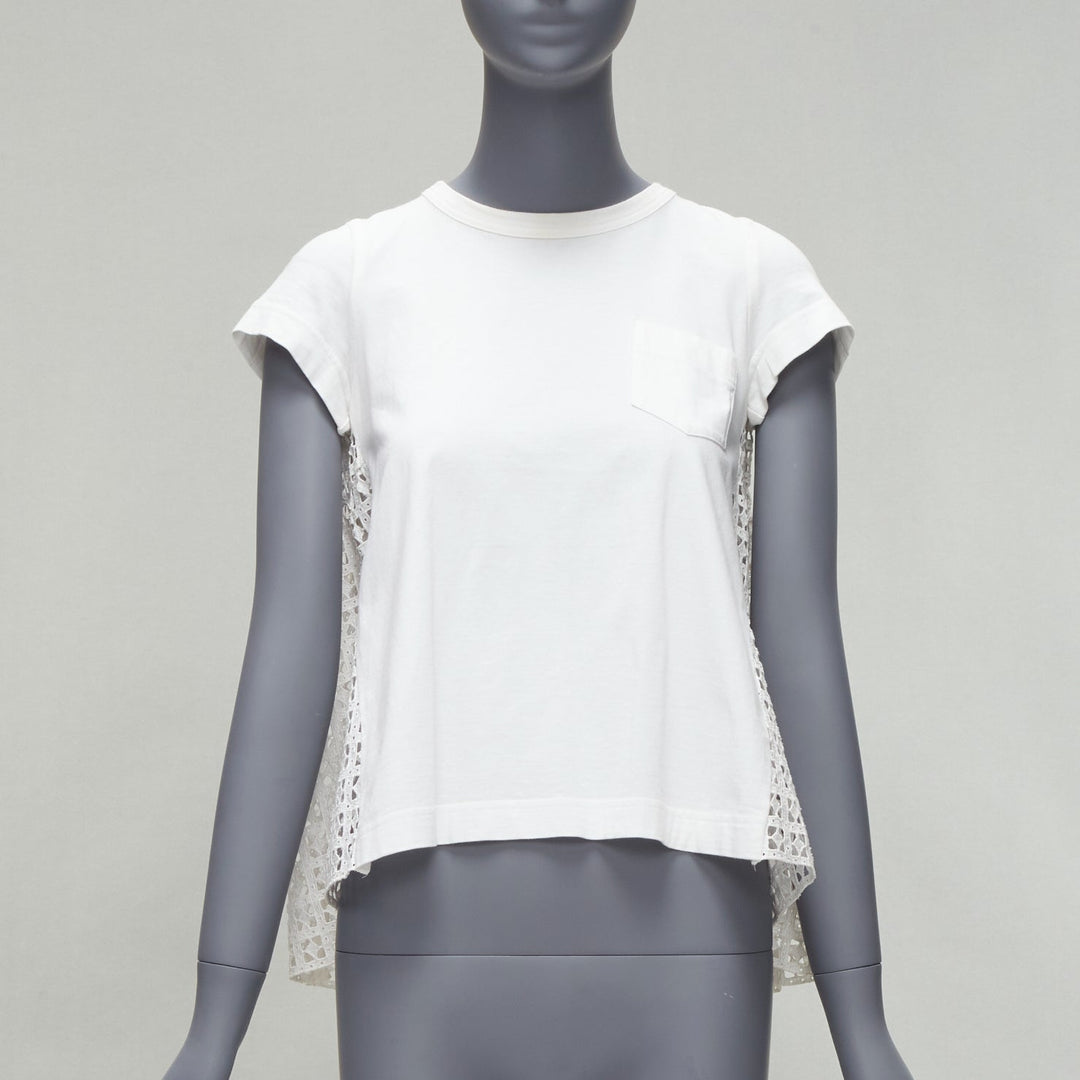 SACAI LUCK white eyelet flared back babydoll short sleeve pockted tshirt top JP1 S