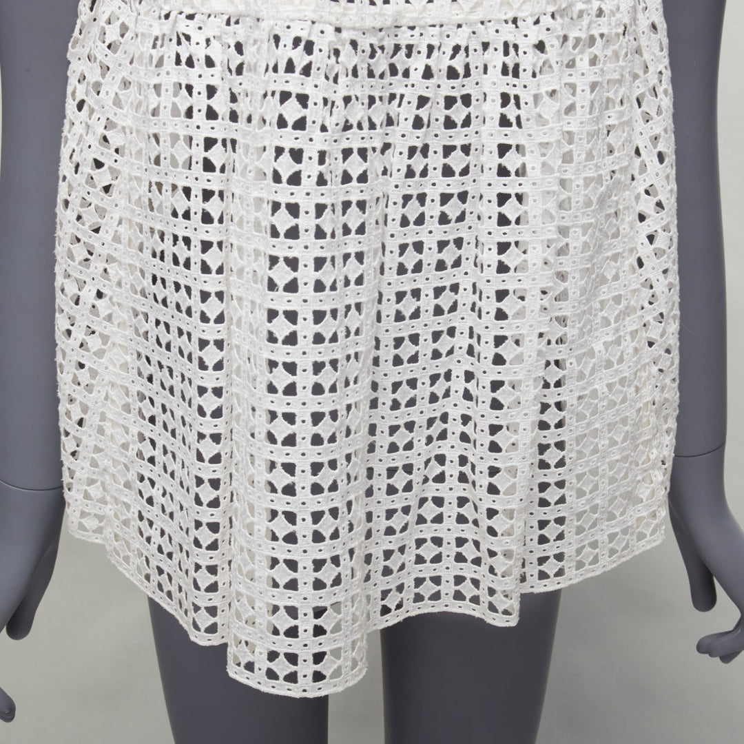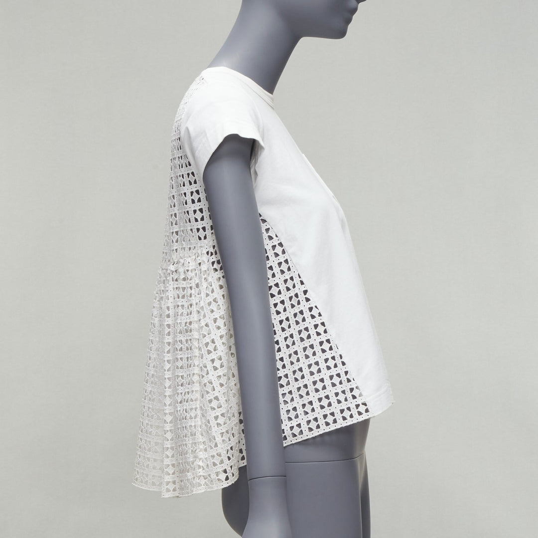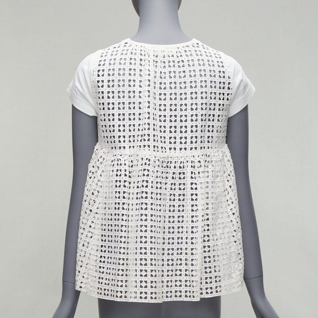SACAI LUCK white eyelet flared back babydoll short sleeve pockted tshirt top JP1 S