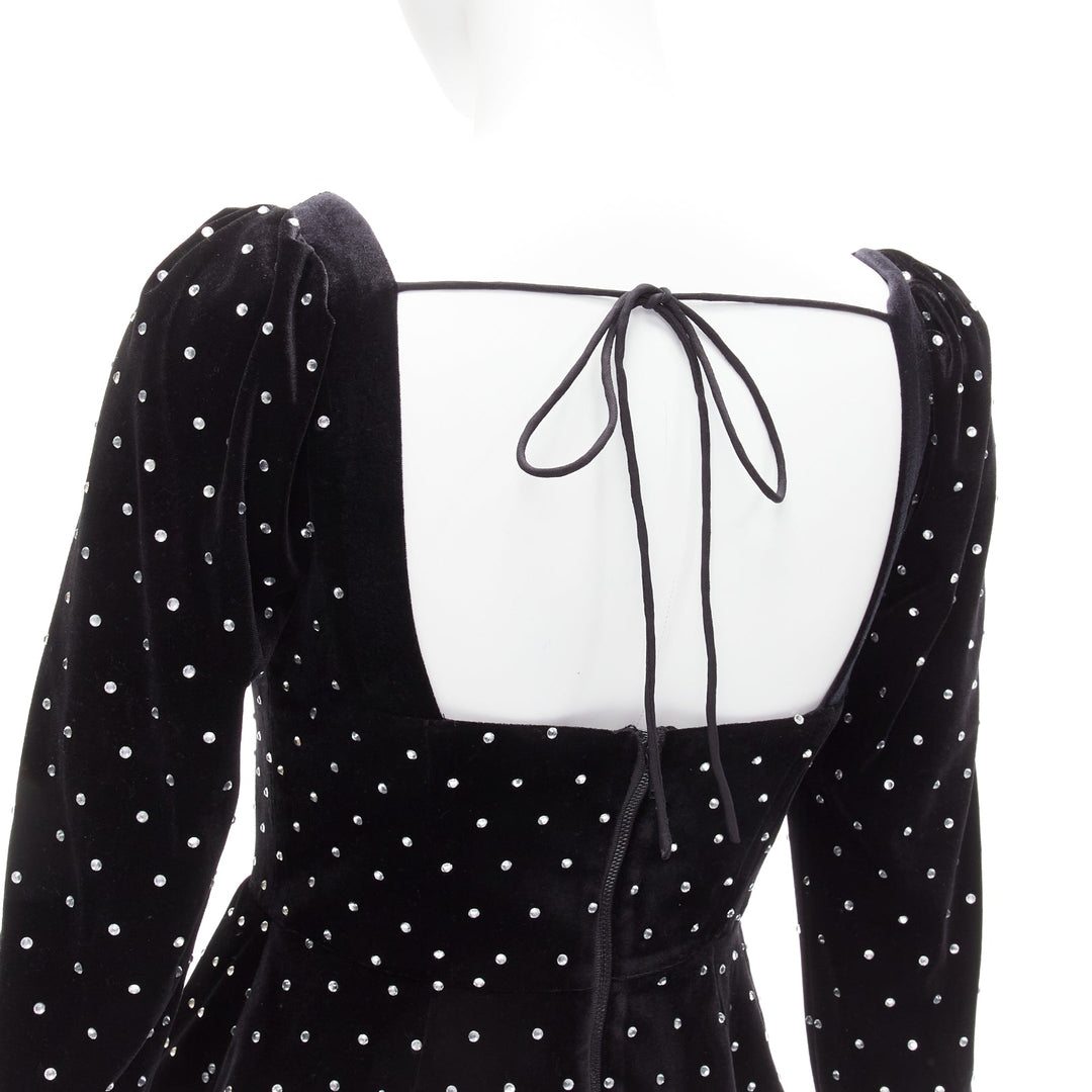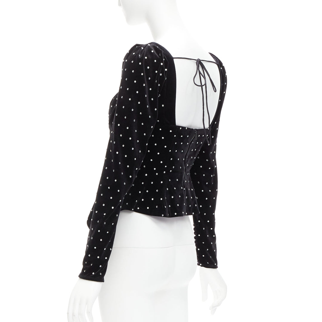 SELF PORTRAIT black silver crystal velvet tie puff sleeve top UK6 XS Jennie