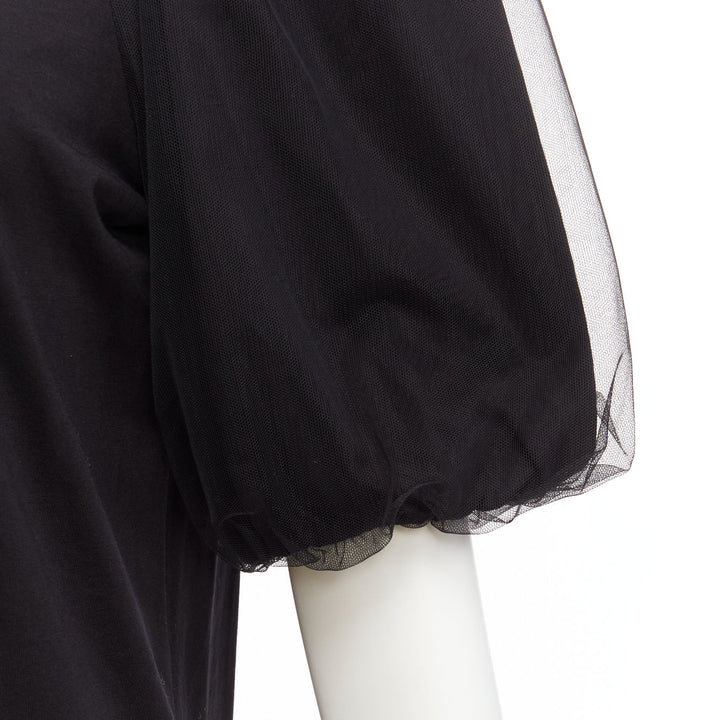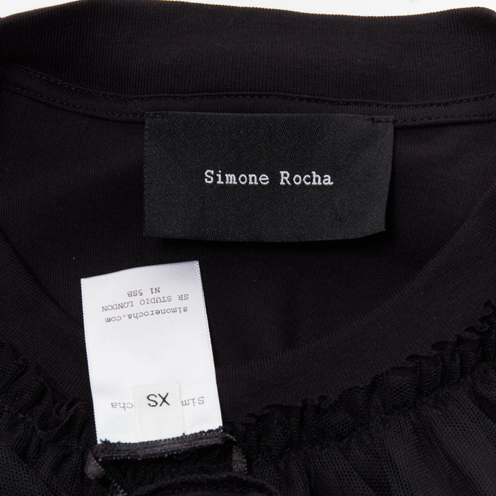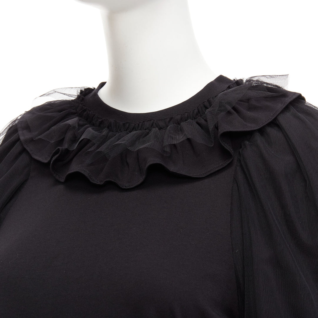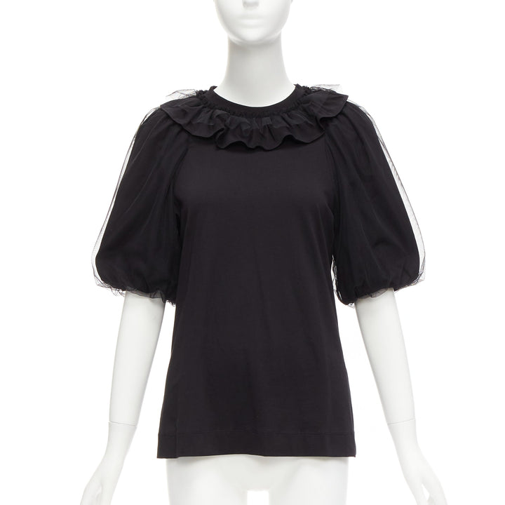 SIMONE ROCHA black cotton sheer overlay puff sleeves ruffle tshirt XS