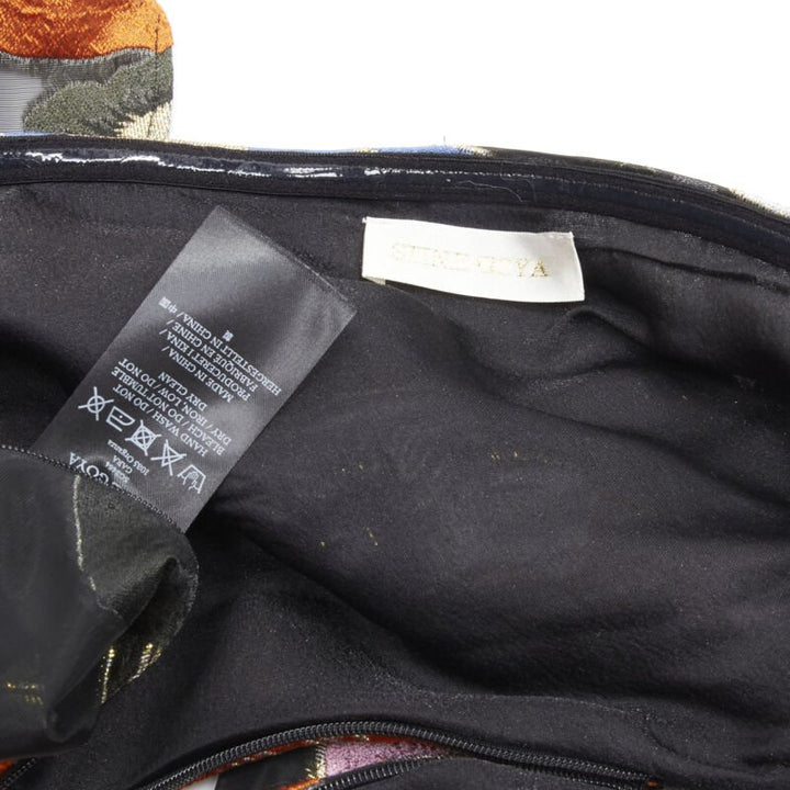 STINE GOYA orange blue floral jacquard peplum balloon sleeves top XS