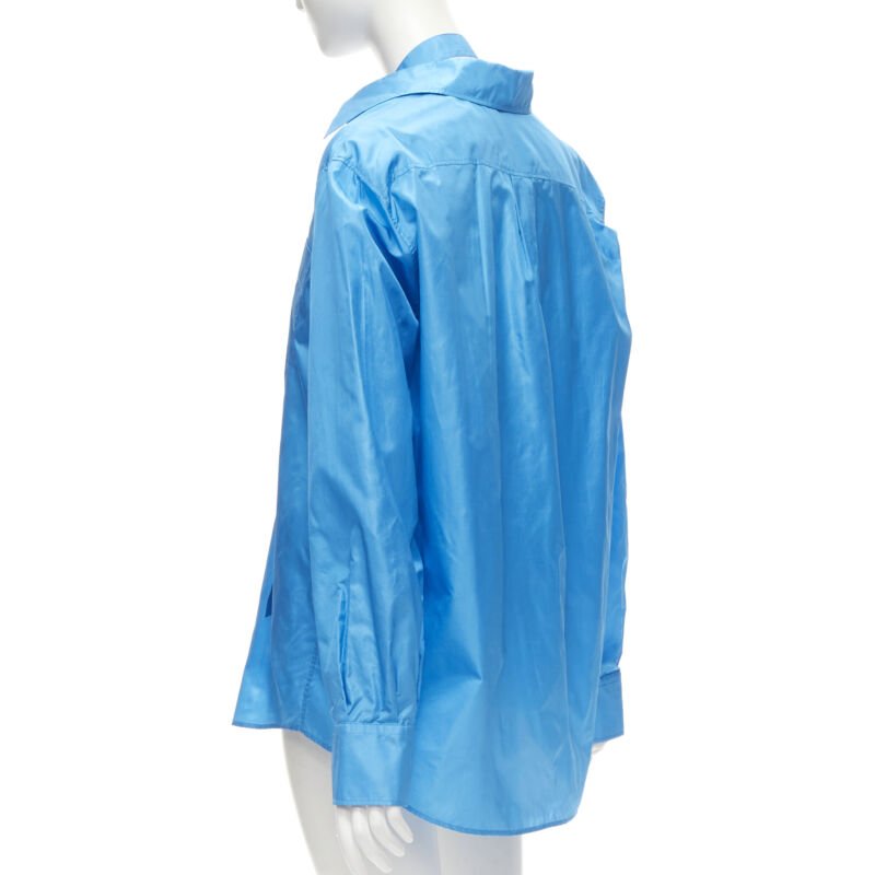 VALENTINO 2022 Runway blue silk tafetta relaxed neck tie oversized shirt IT38 XS