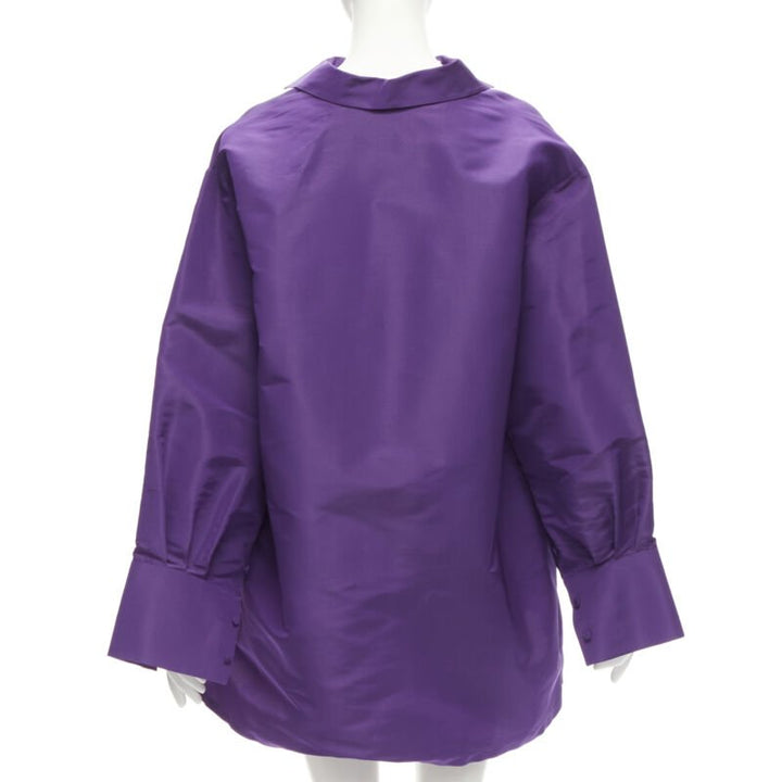 VALENTINO 2022 Runway purple silk taffeta 3D cut oversized tunic shirt IT38 XS