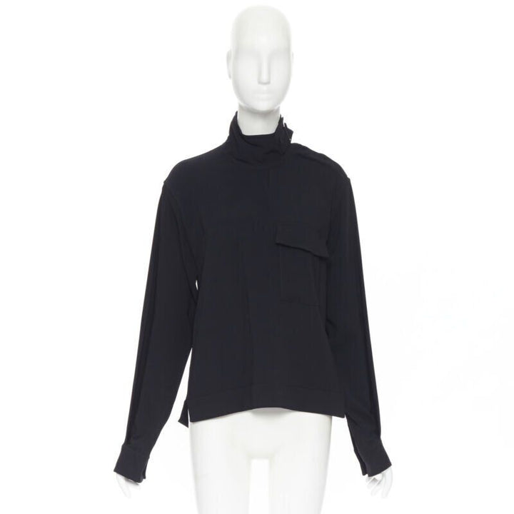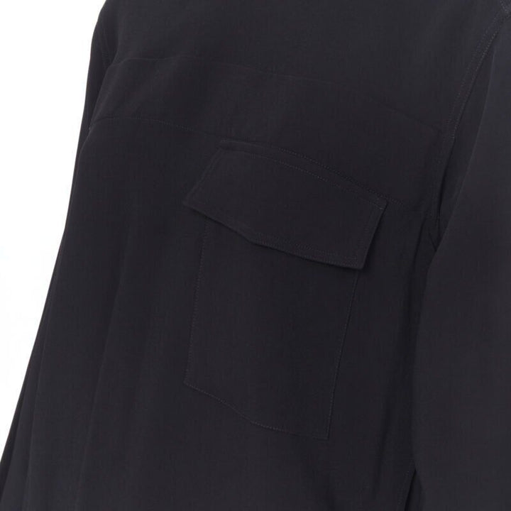 VICTORIA BECKHAM black crepe flap breast pocket strapped collar blouse top UK8 M