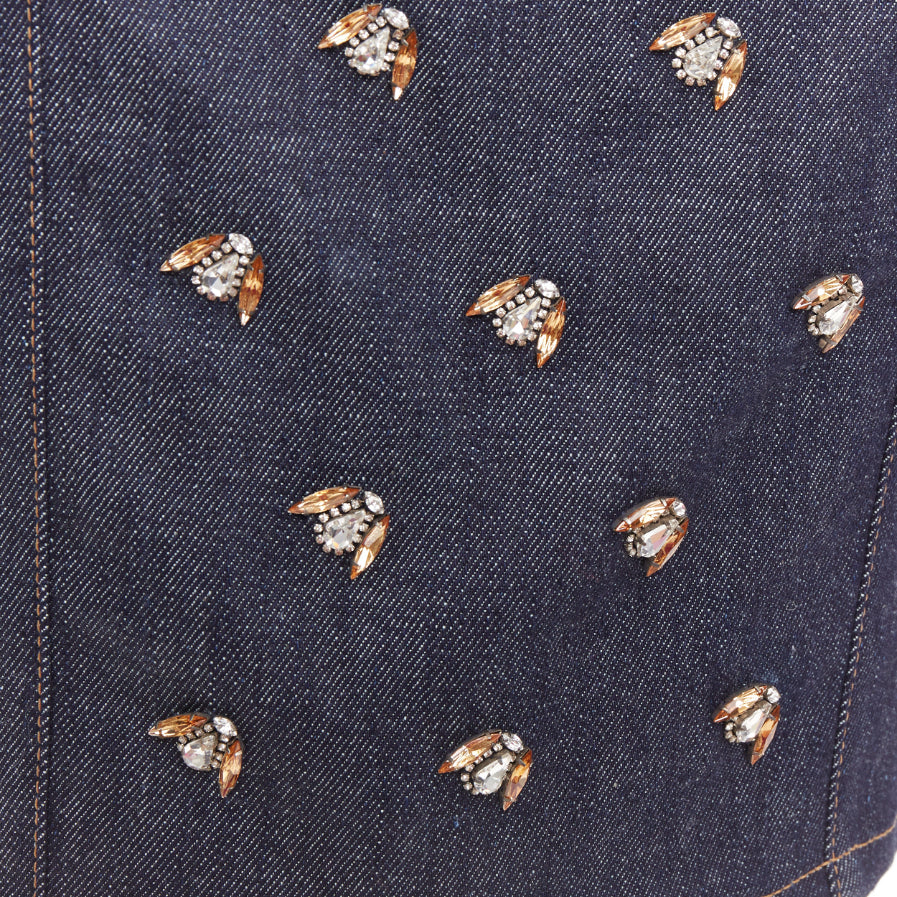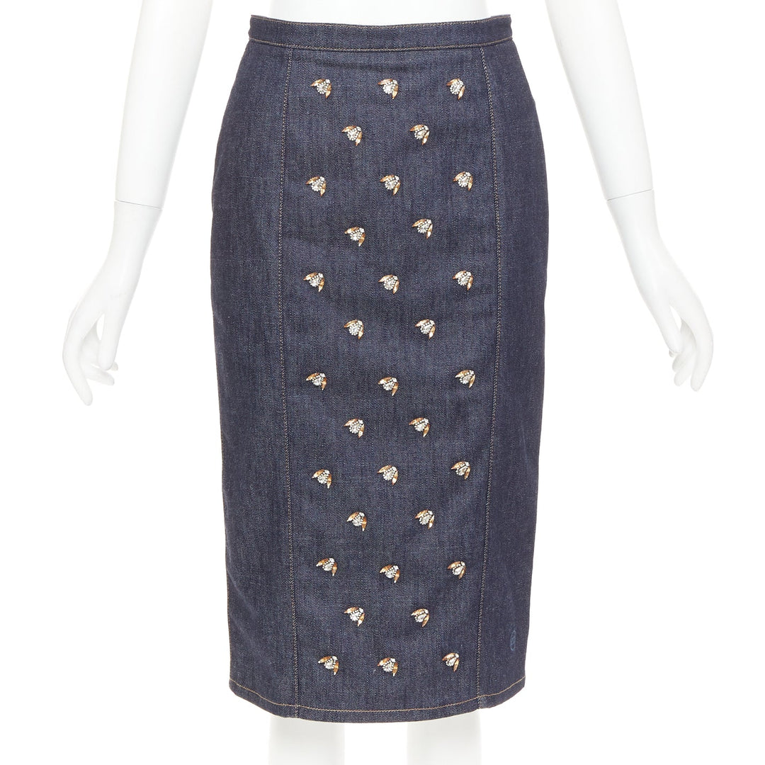 CHRISTIAN DIOR indigo blue denim glass metal bead embellished midi skirt FR36 S