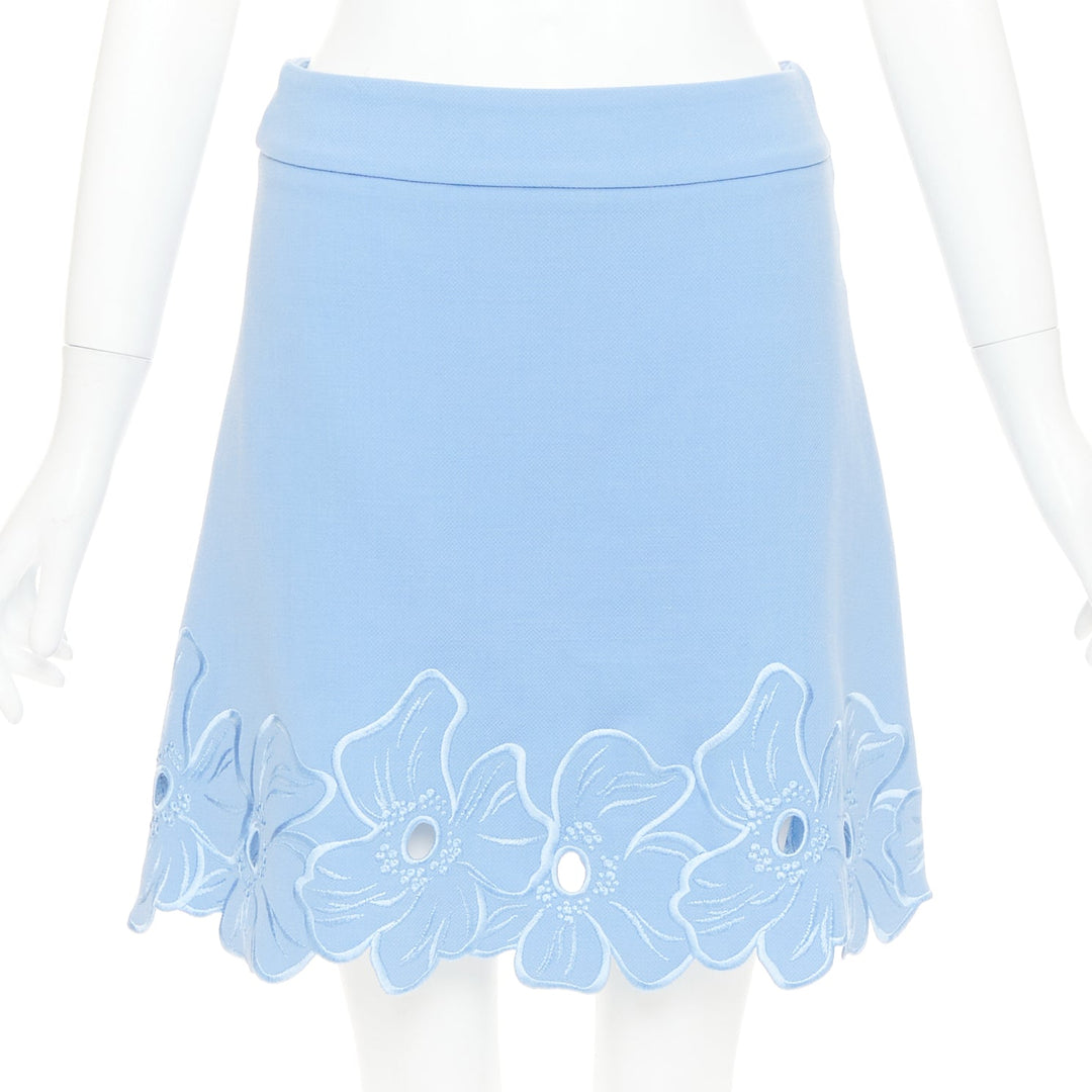 CHRISTIAN DIOR powder blue wool crepe floral cutout embroidered hem skirt FR38 M