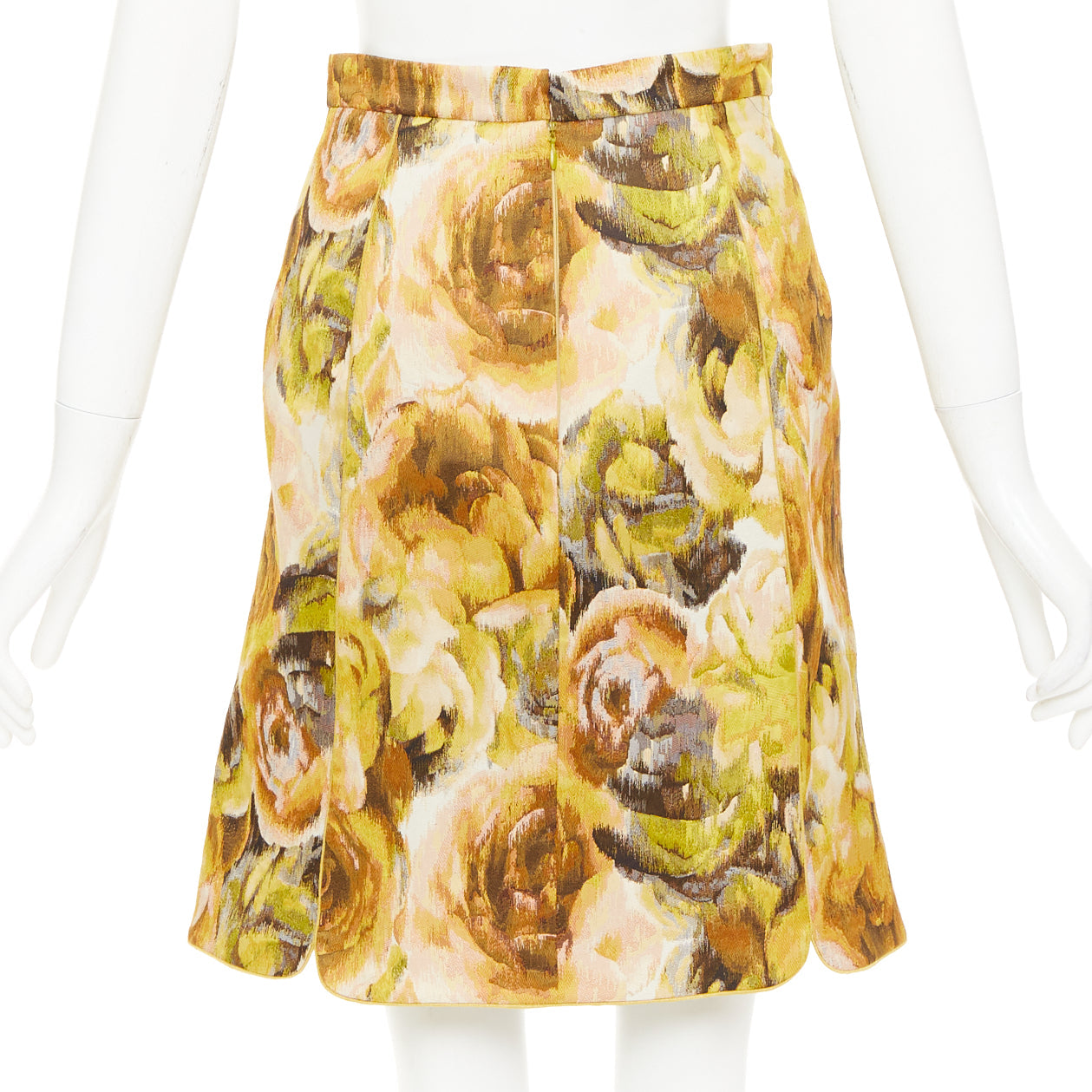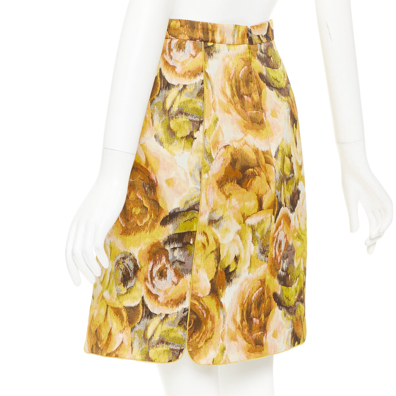 GIAMBATTISTA VALLI gold yellow floral jacquard high waist skirt IT40 XS