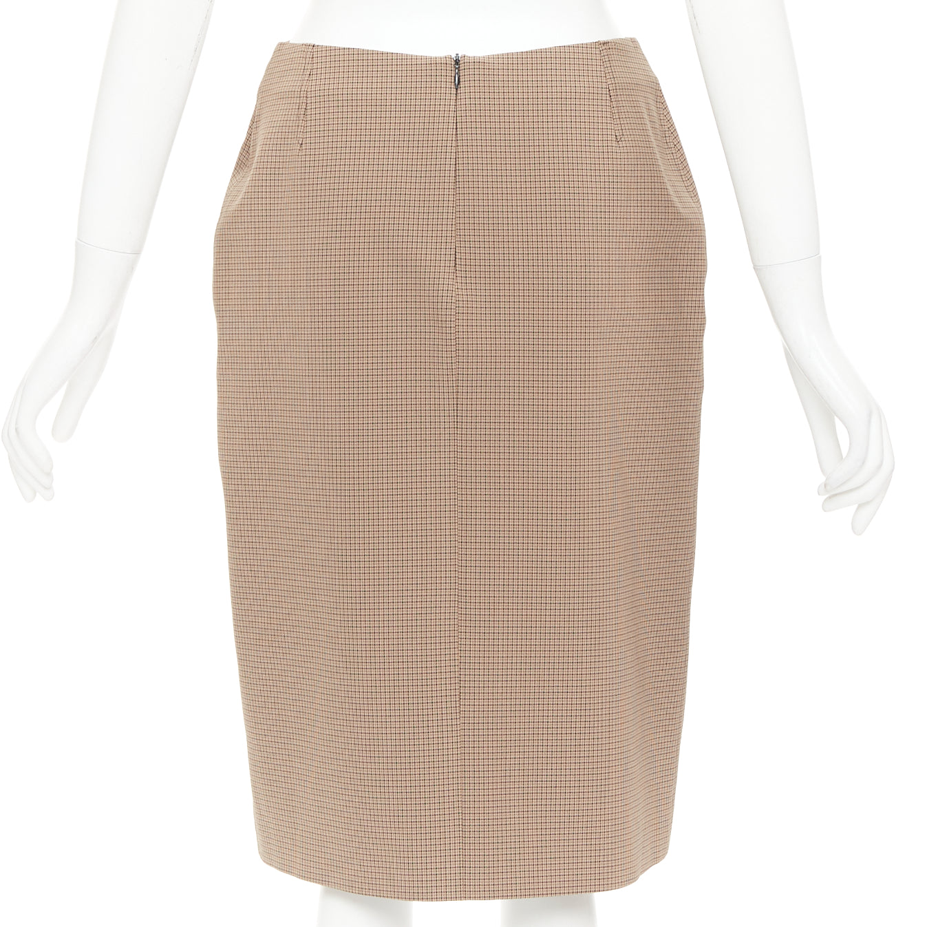 PRADA Vintage brown micro houndstooth checked high waist pencil skirt IT42 M