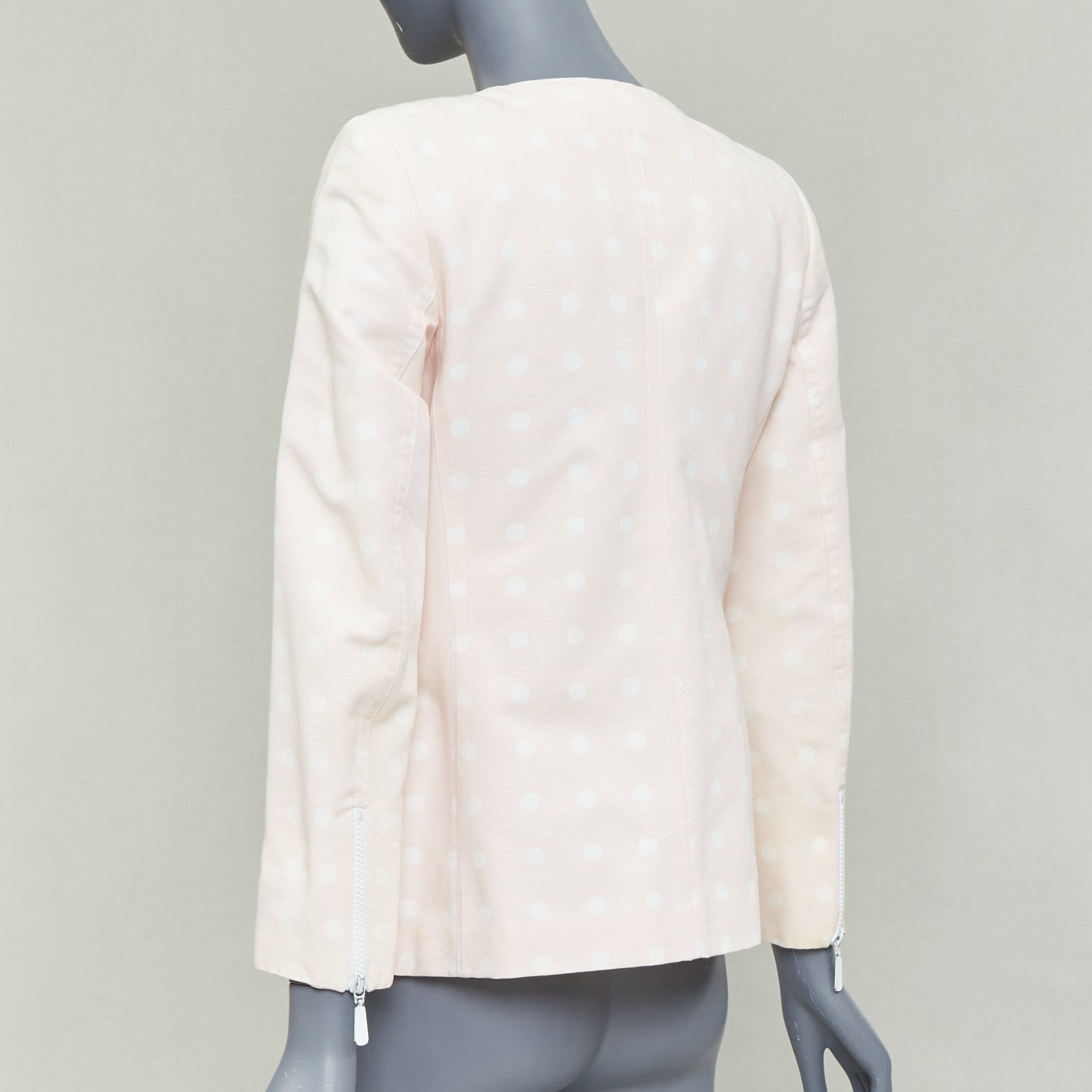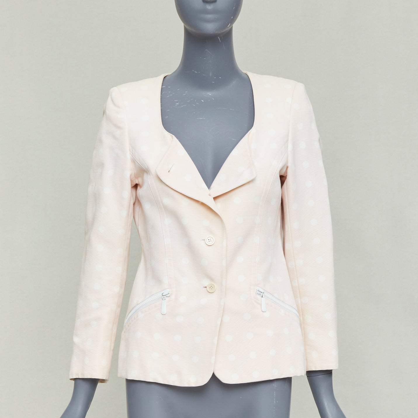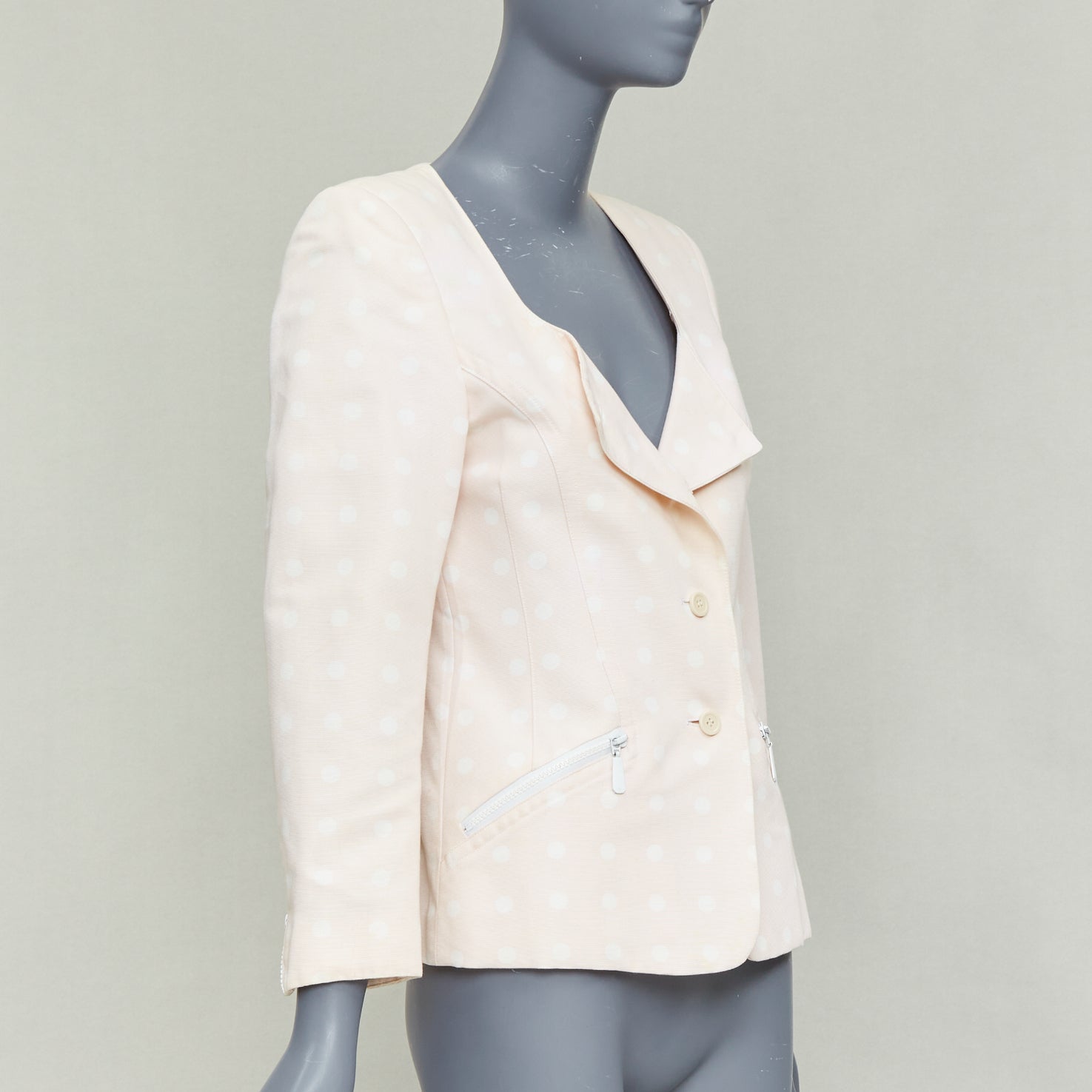 ESCADA Vintage pink cream polka dot cotton power shoulder blazer jacket IT36 XXS