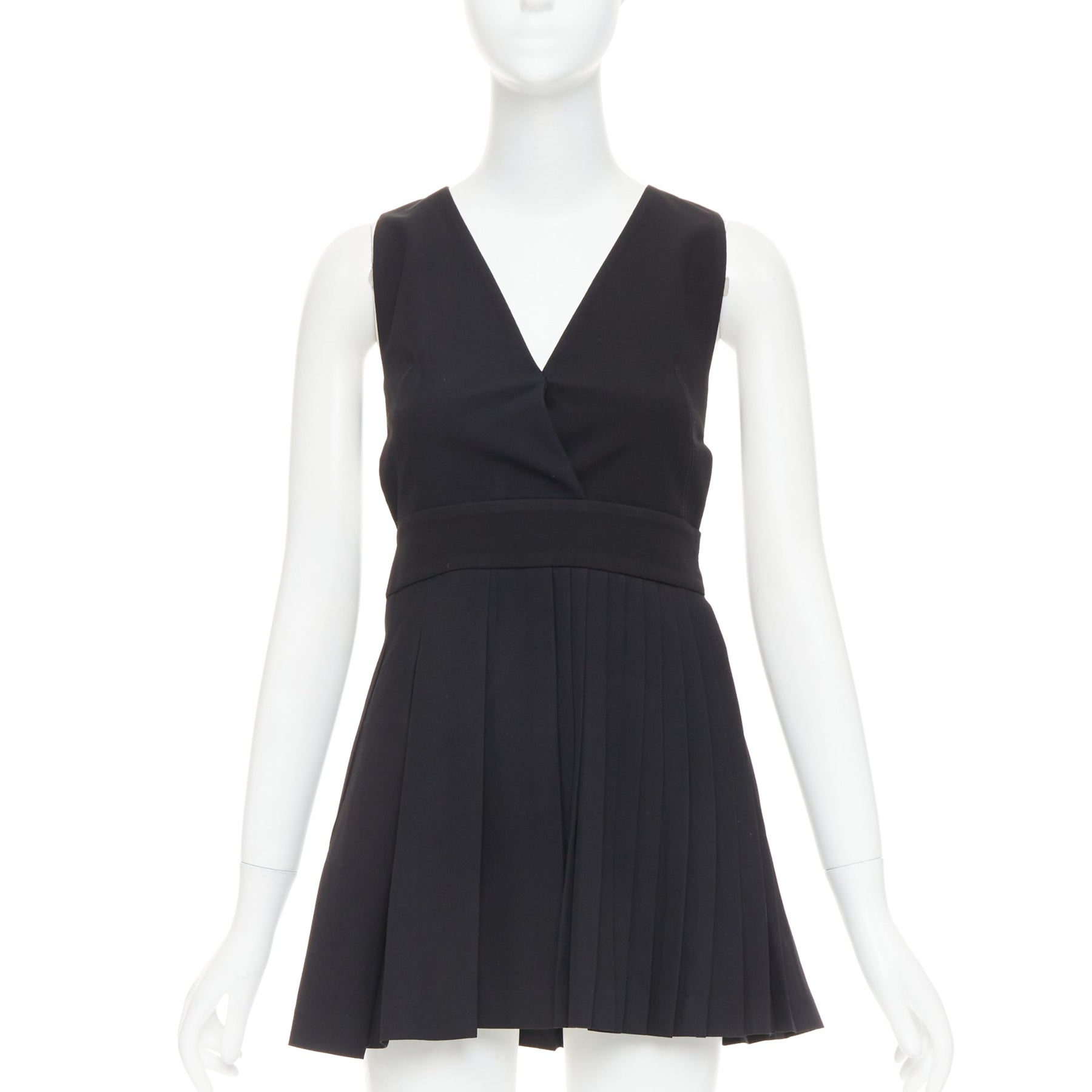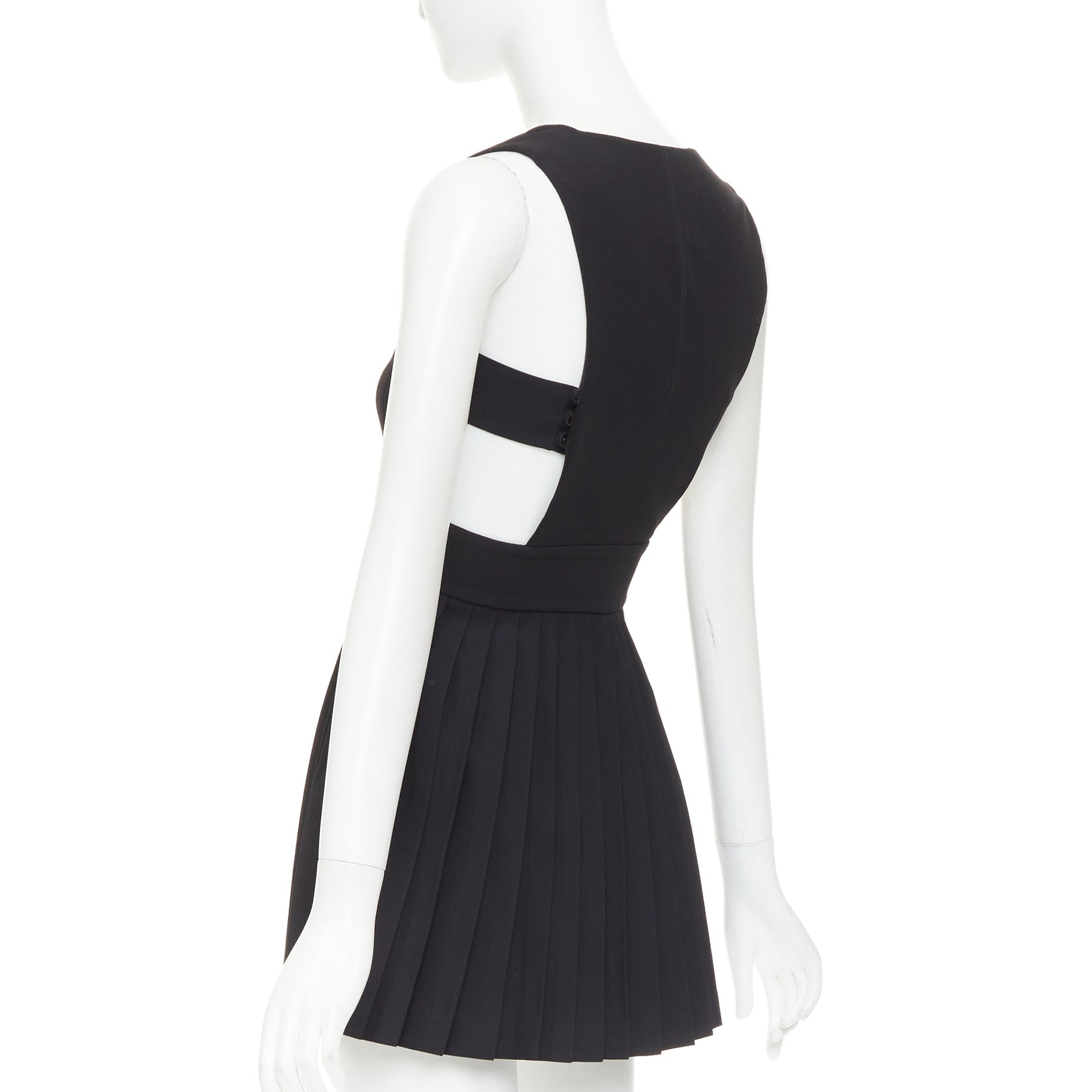 FAUSTO PUGLISI black crepe multi pleated cut out V neck mini dress IT38 XS