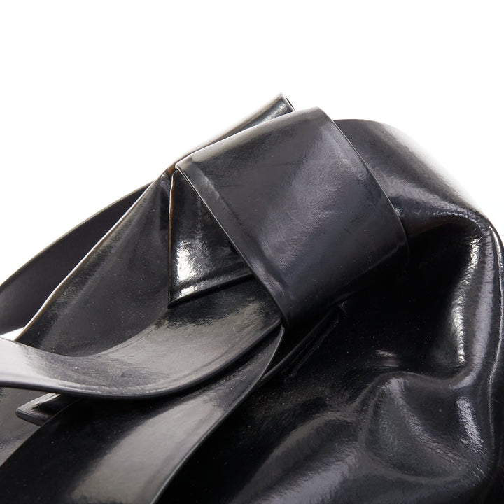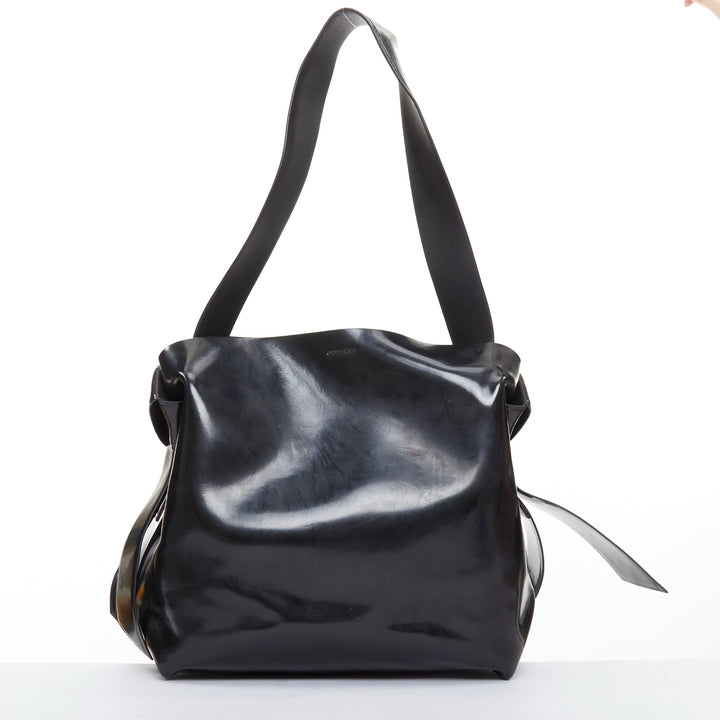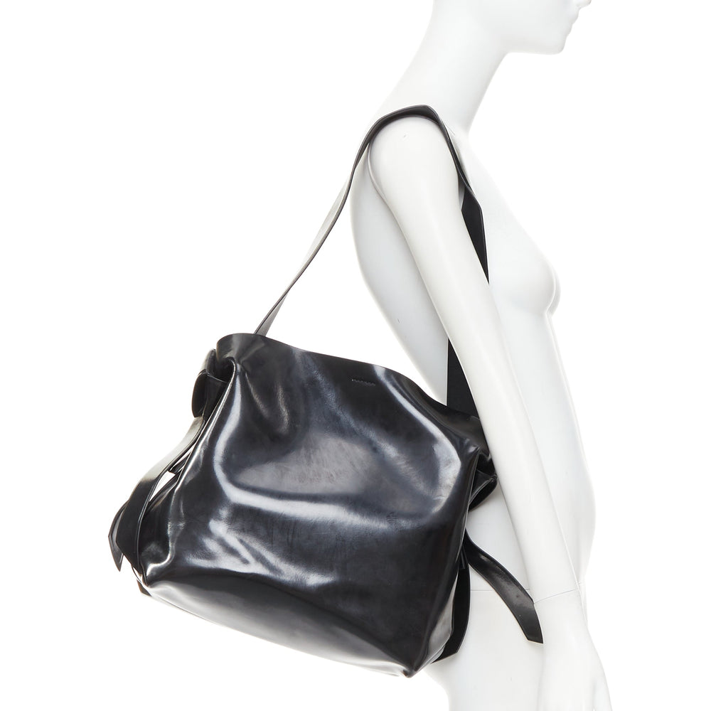 ACNE STUDIOS Musubi glossy black leather bow side shoulder hobo bag
