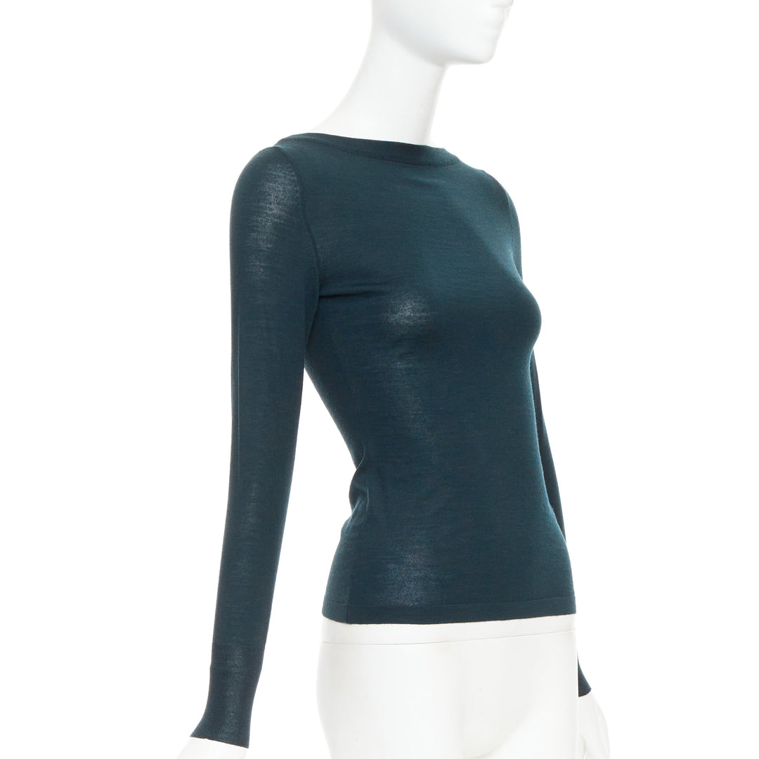 ALAIA forest green lightweight wool bateau neck pullover sweater FR36 S
