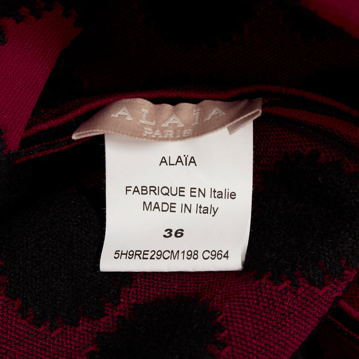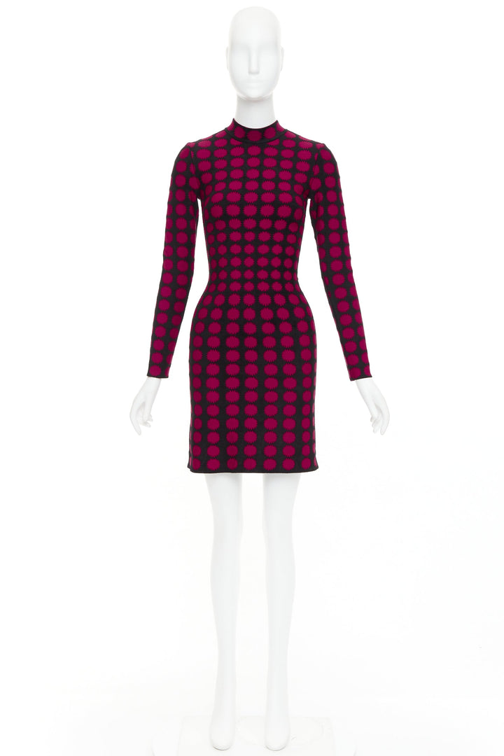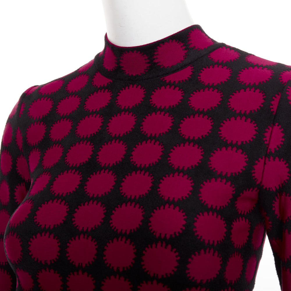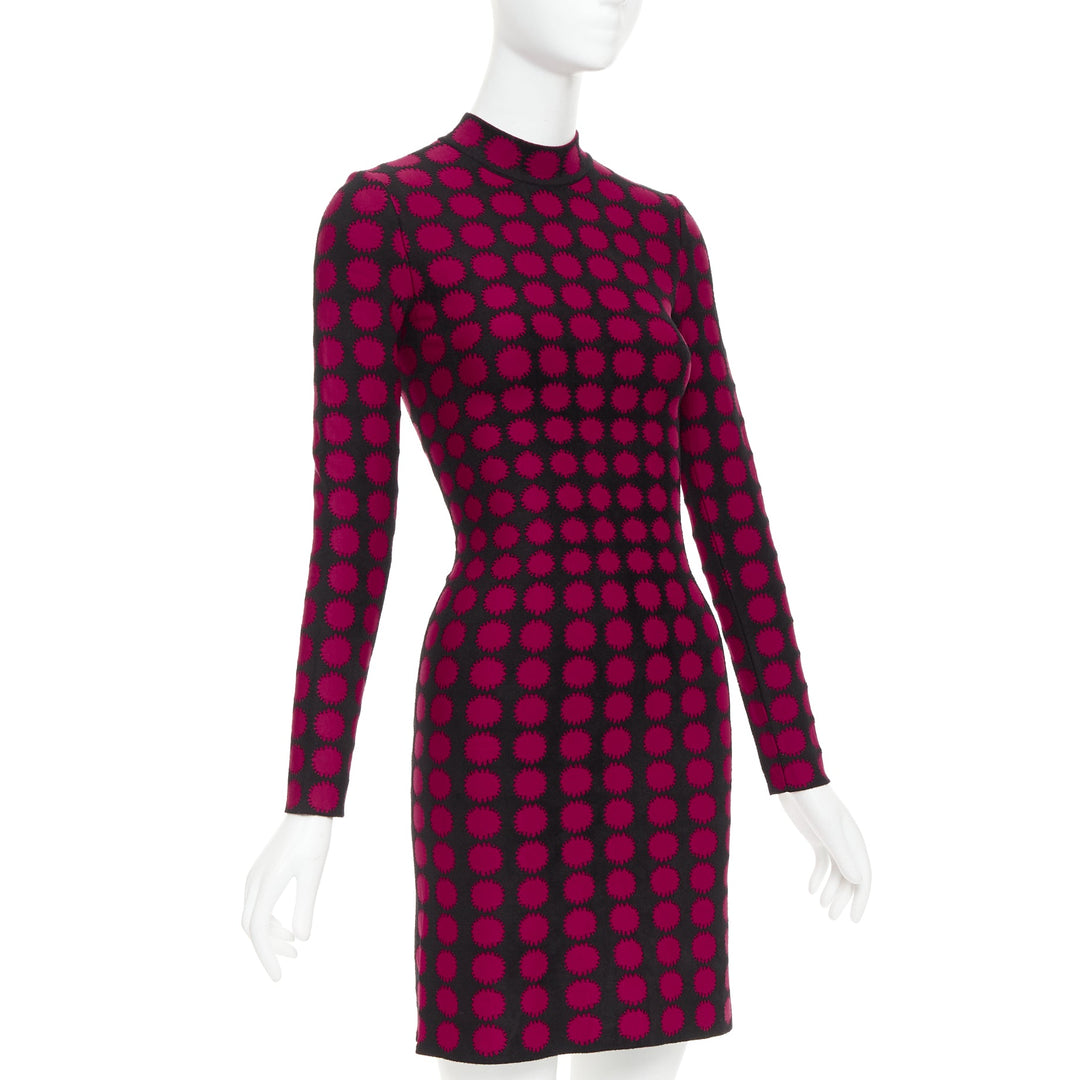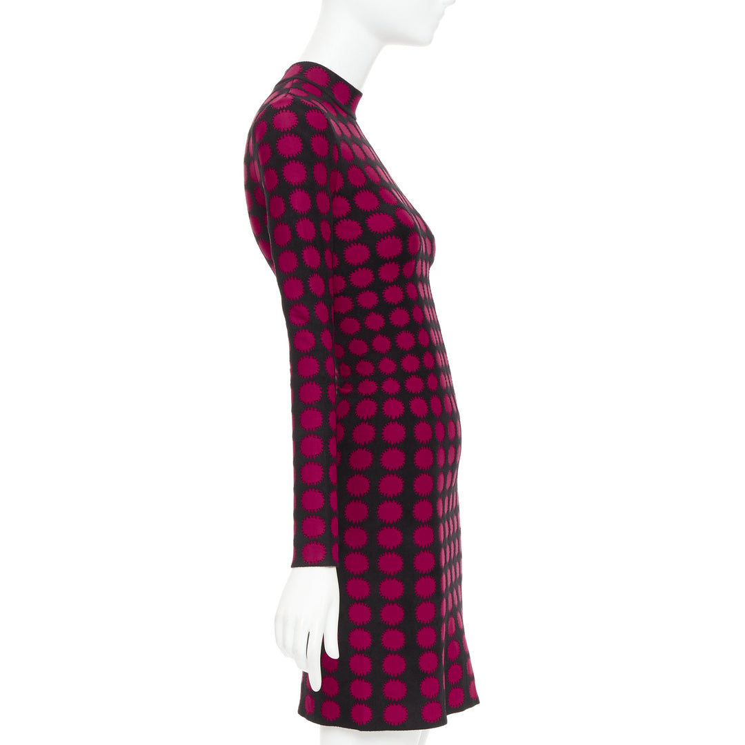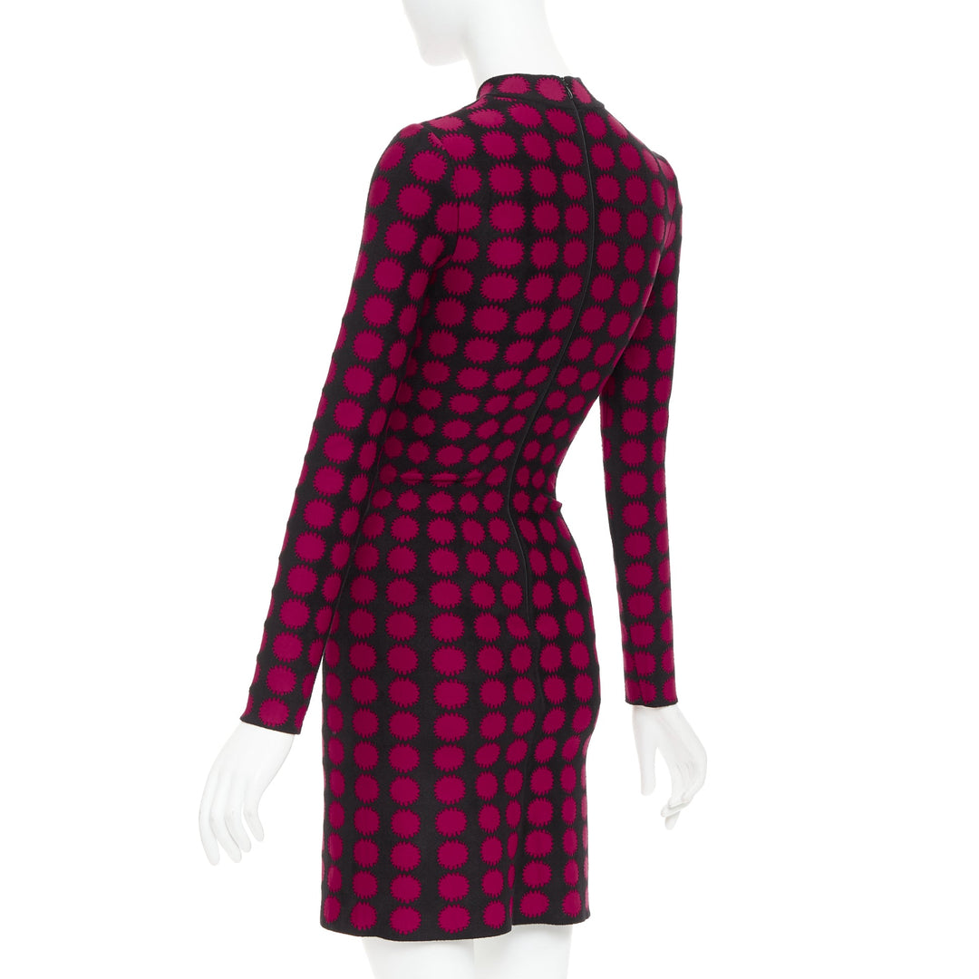 ALAIA red black viscose graphic polka dot illusion bodycon dress FR36 S