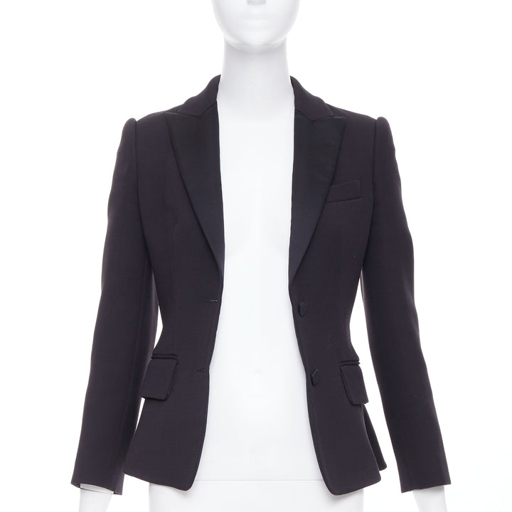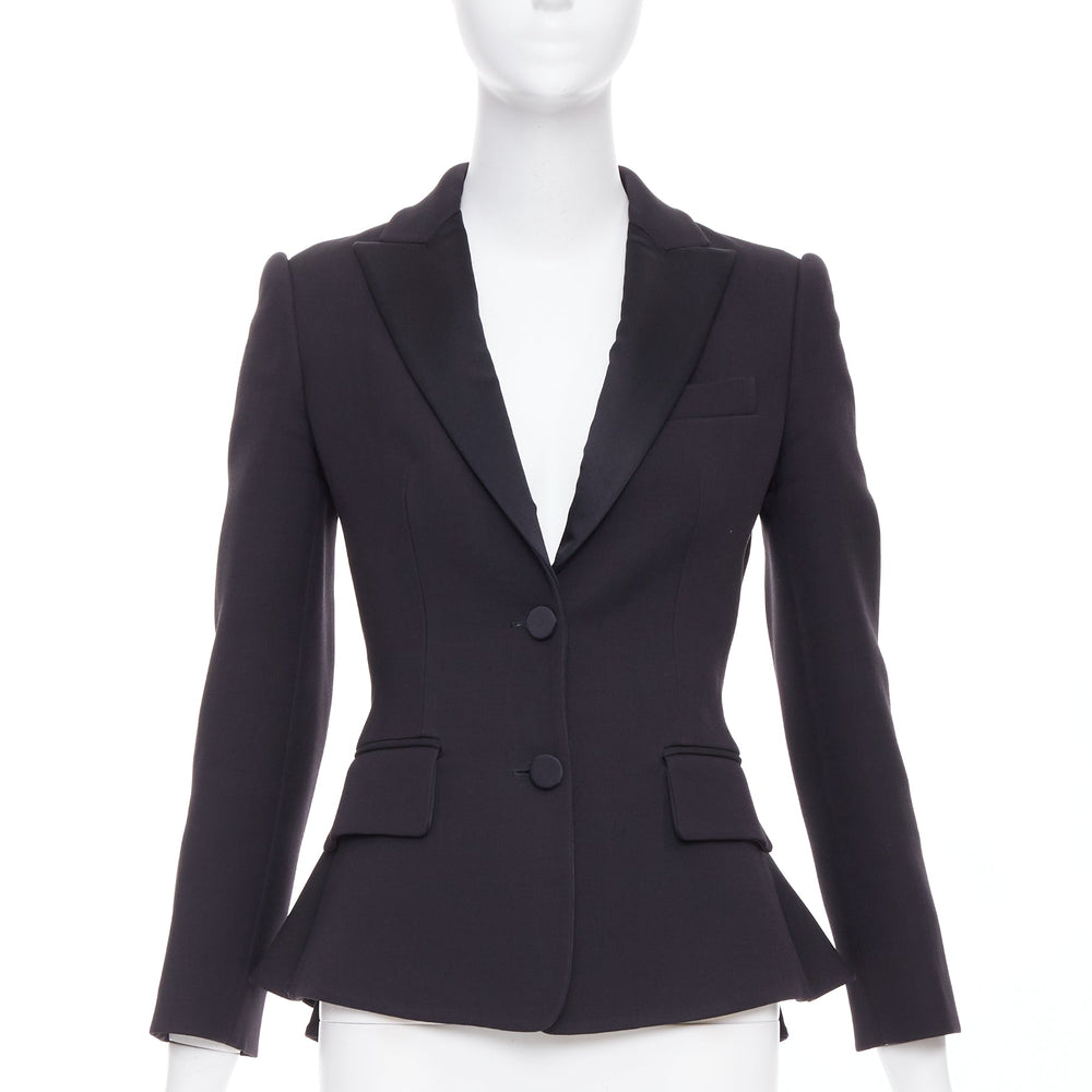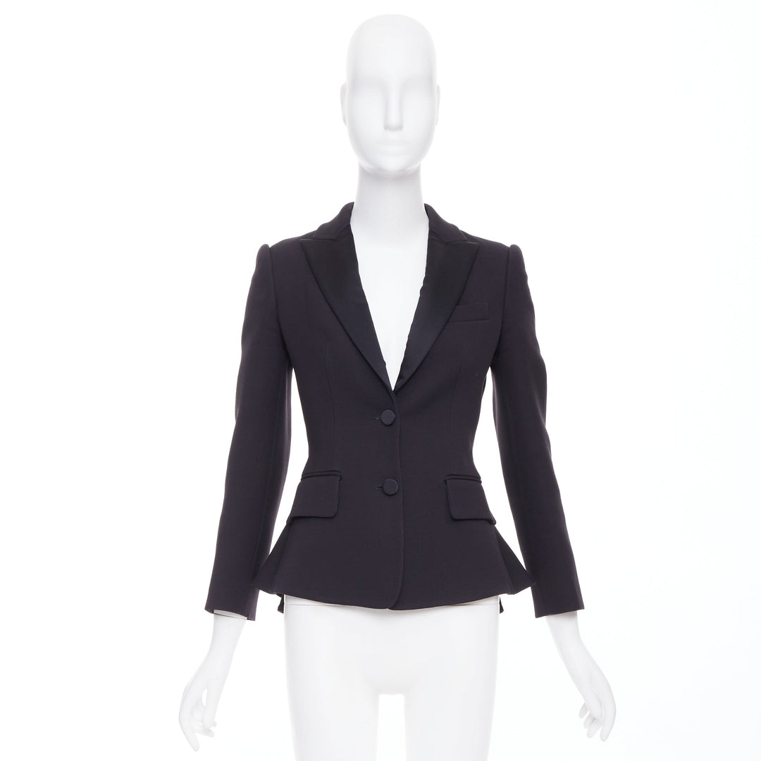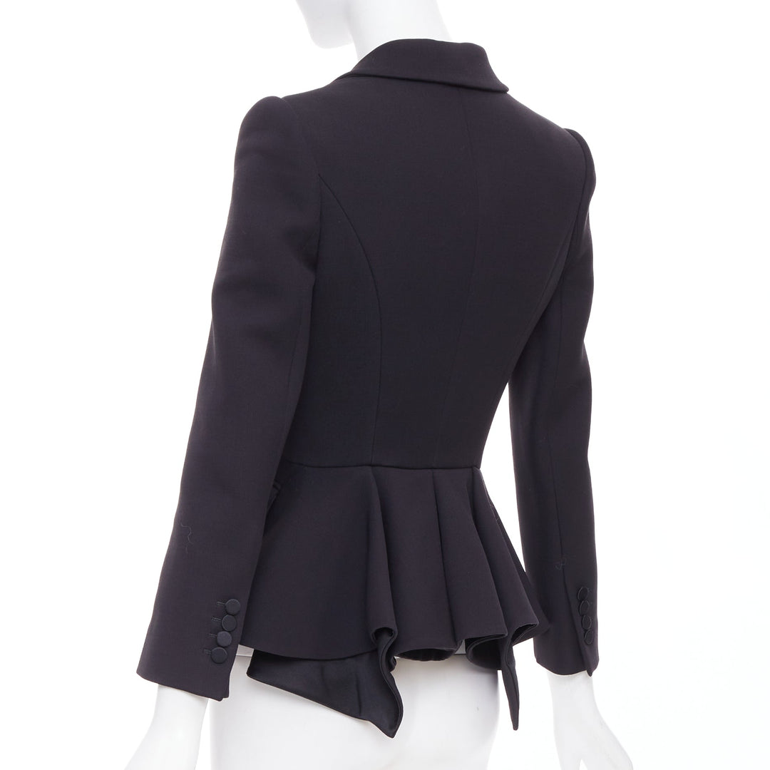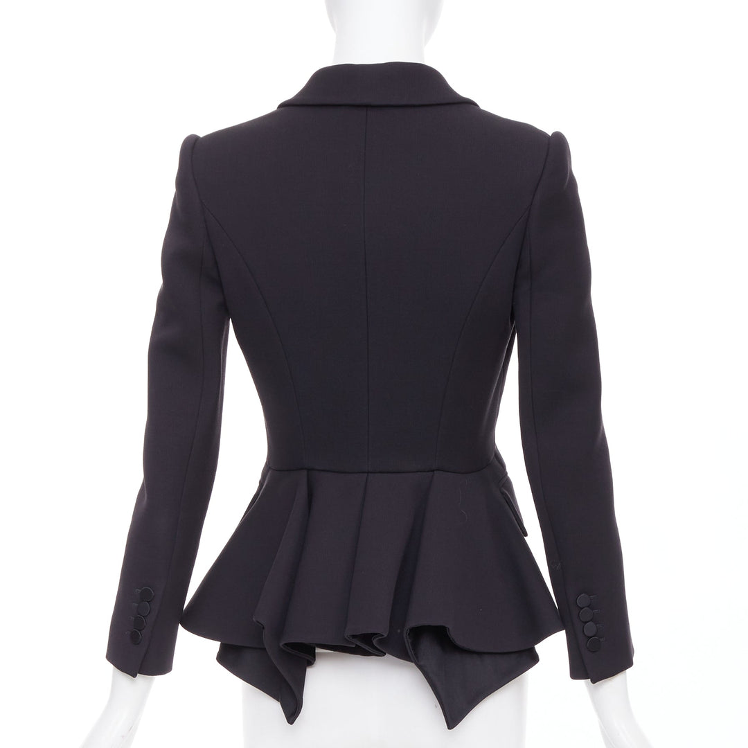 ALEXANDER MCQUEEN 2016 black wool silk sculpted peplum blazer jacket IT38 XS