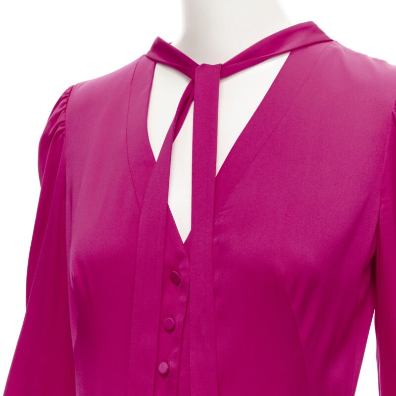 ALEXANDER MCQUEEN 2019 pink silk puff sleeves pussy bow draped skirt dress IT42