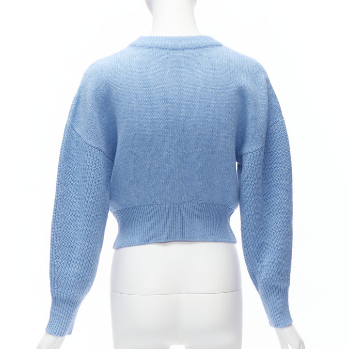 ALEXANDER MCQUEEN 2021 powder blue speckled wool boxy cropped sweater XS
