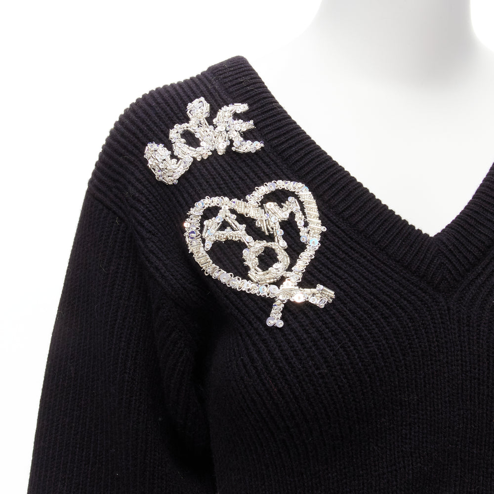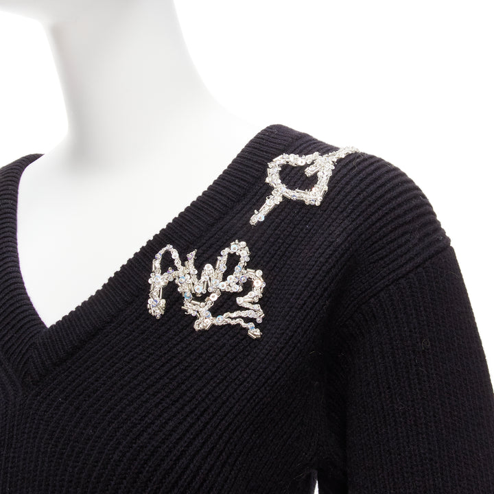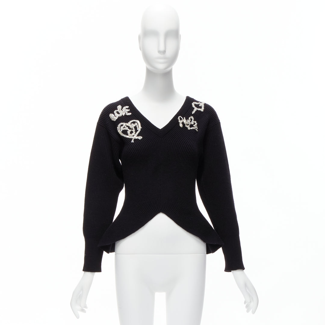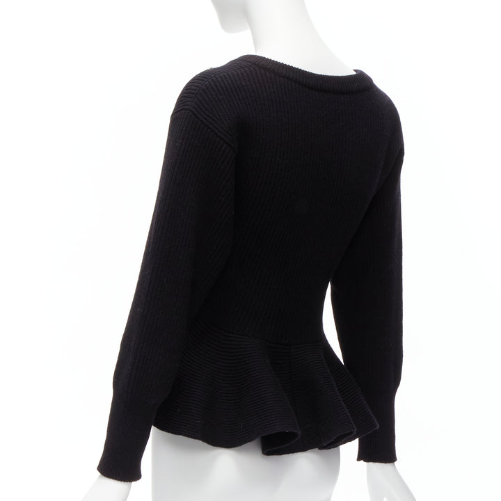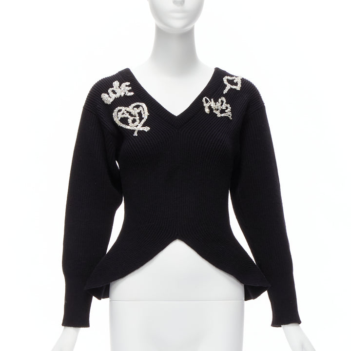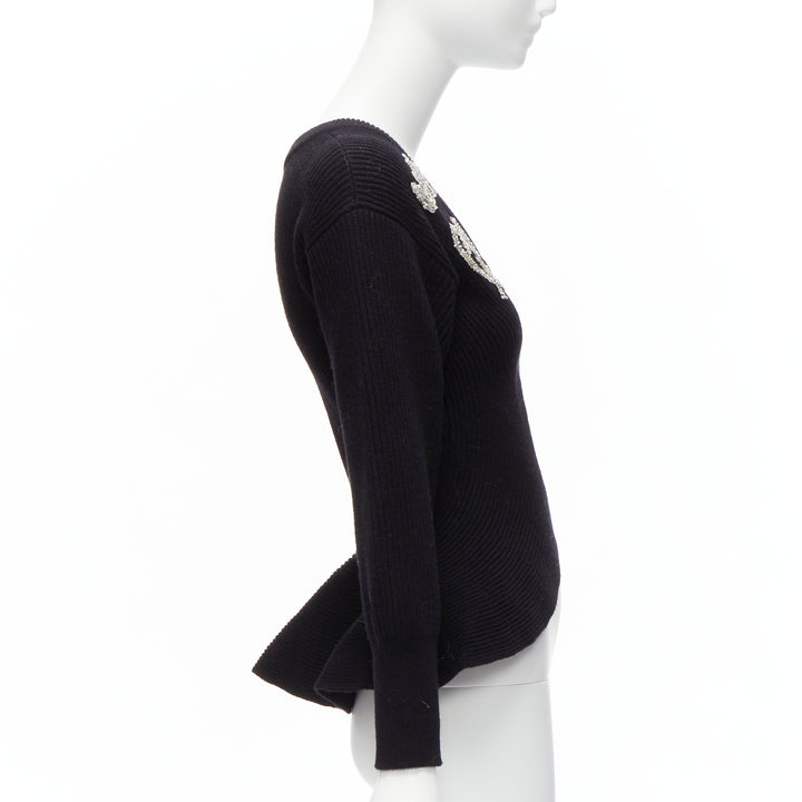 ALEXANDER MCQUEEN 2022 black logo beads embellished peplum ribbed sweater S