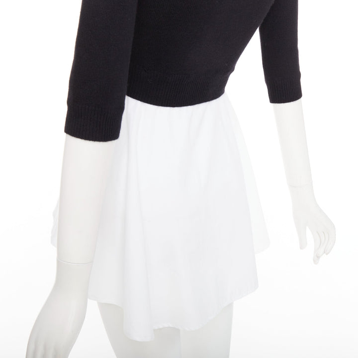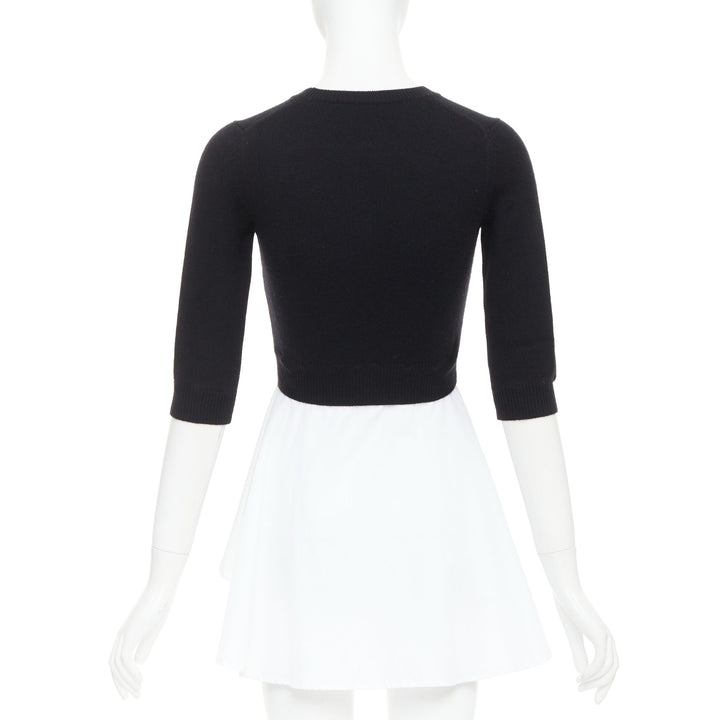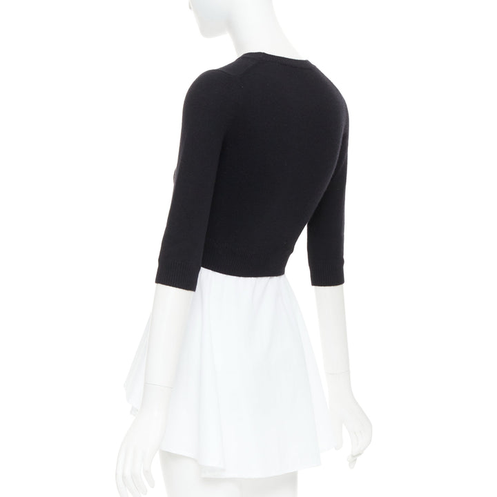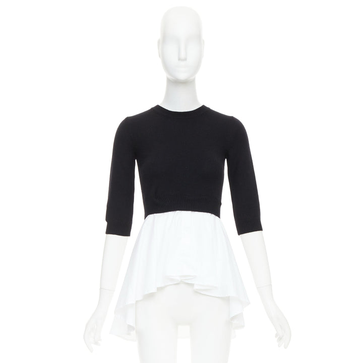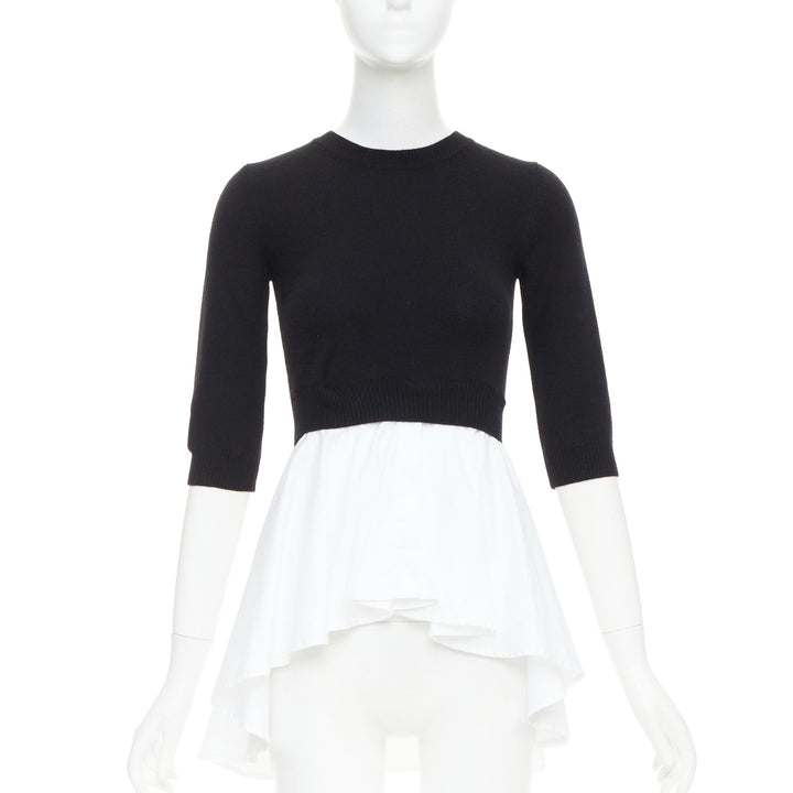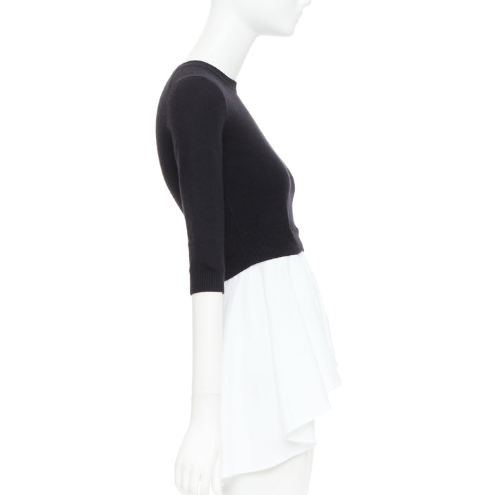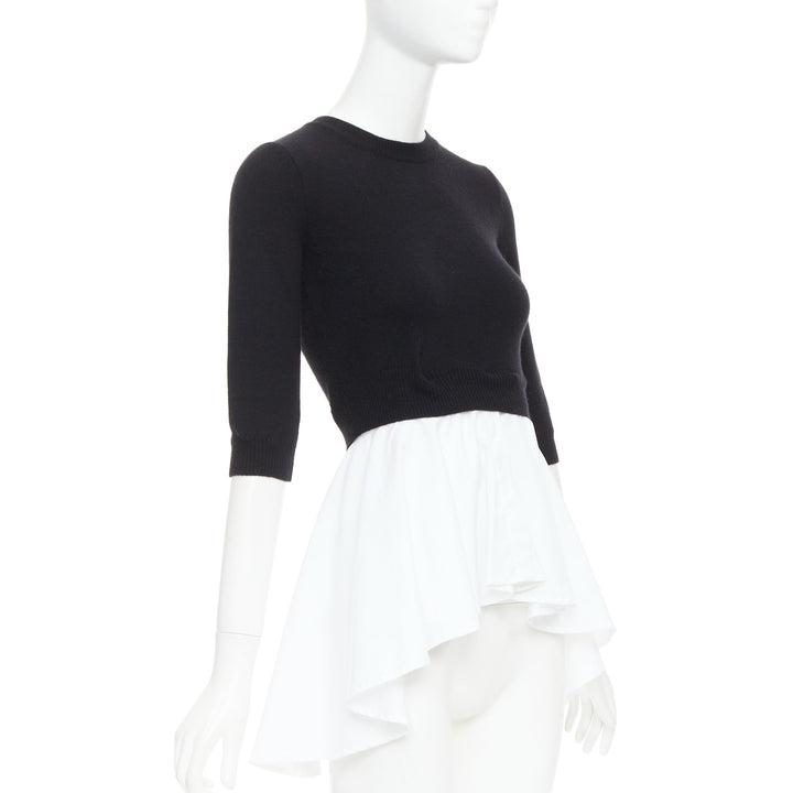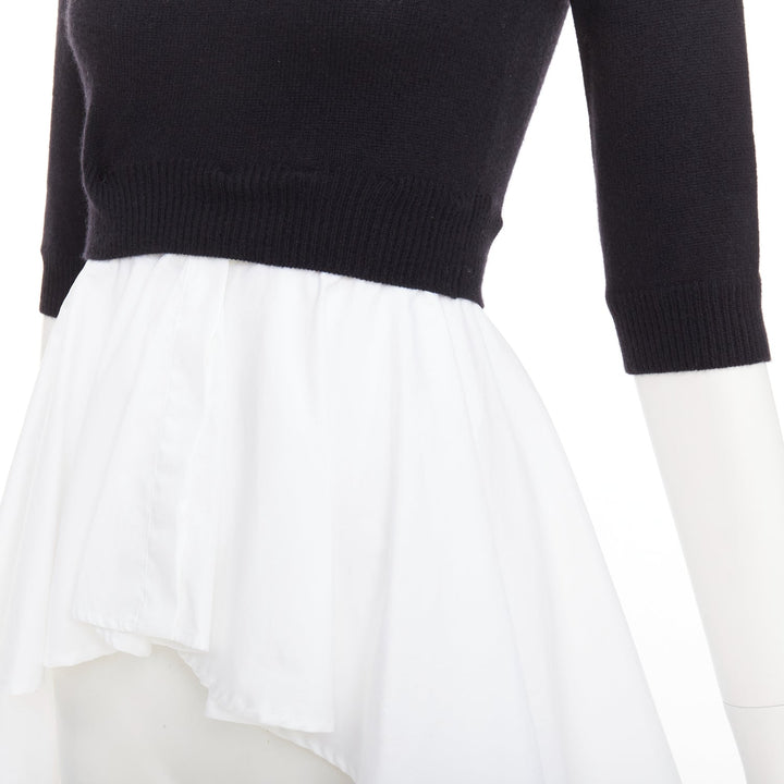 ALEXANDER MCQUEEN black wool cashmere sweater white cotton peplum top XXS