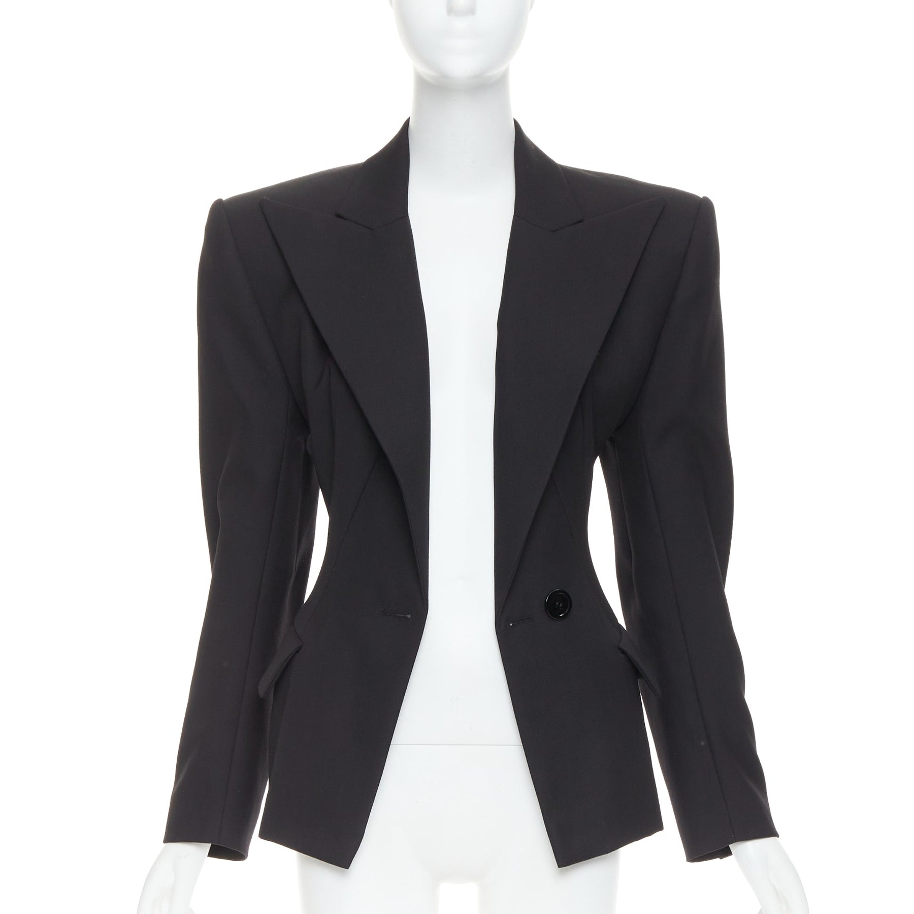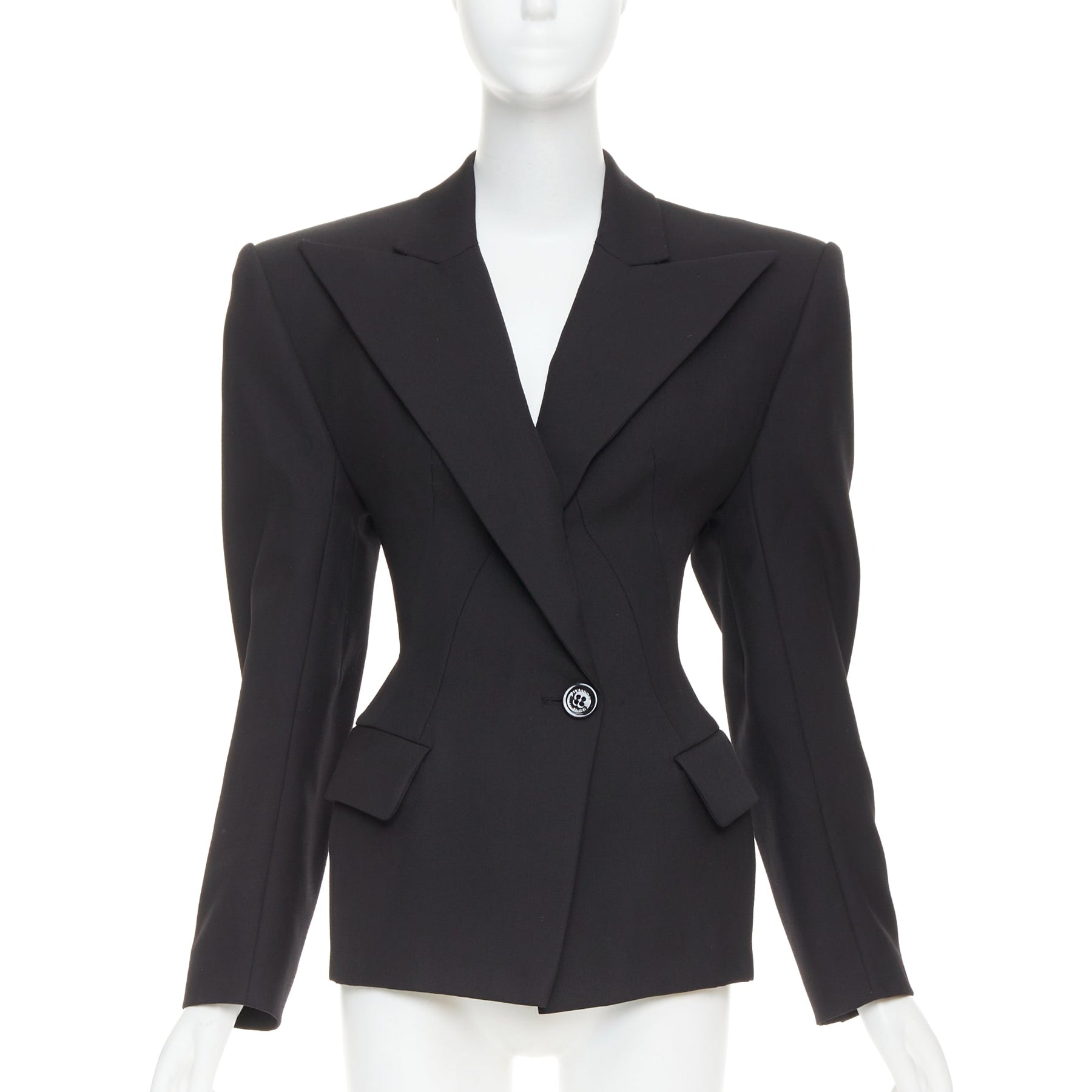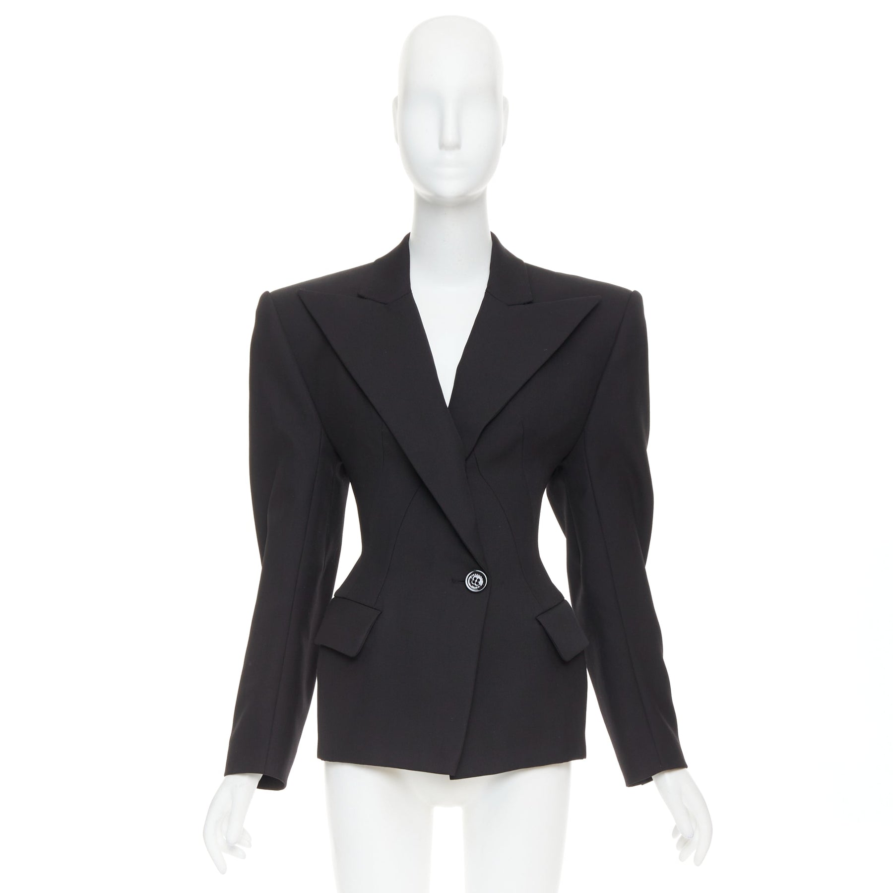 ALEXANDRE VAUTHIER COUTURE black wasp waist power padded shoulder blazer jacket