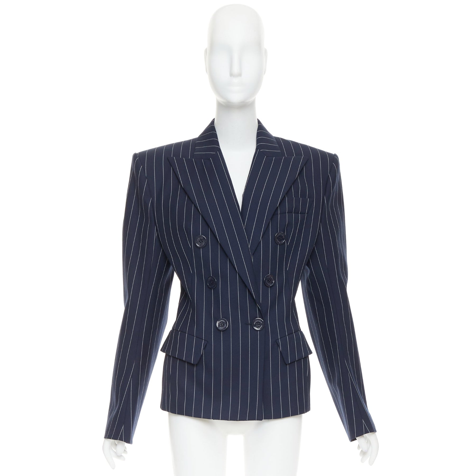 ALEXANDRE VAUTHIER navy blue pinstripe double breasted blazer jacket FR36 S