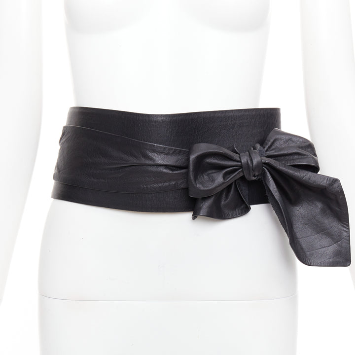 ANDRES OTALORA Viviendo Obi black leather tie front buckled wide belt