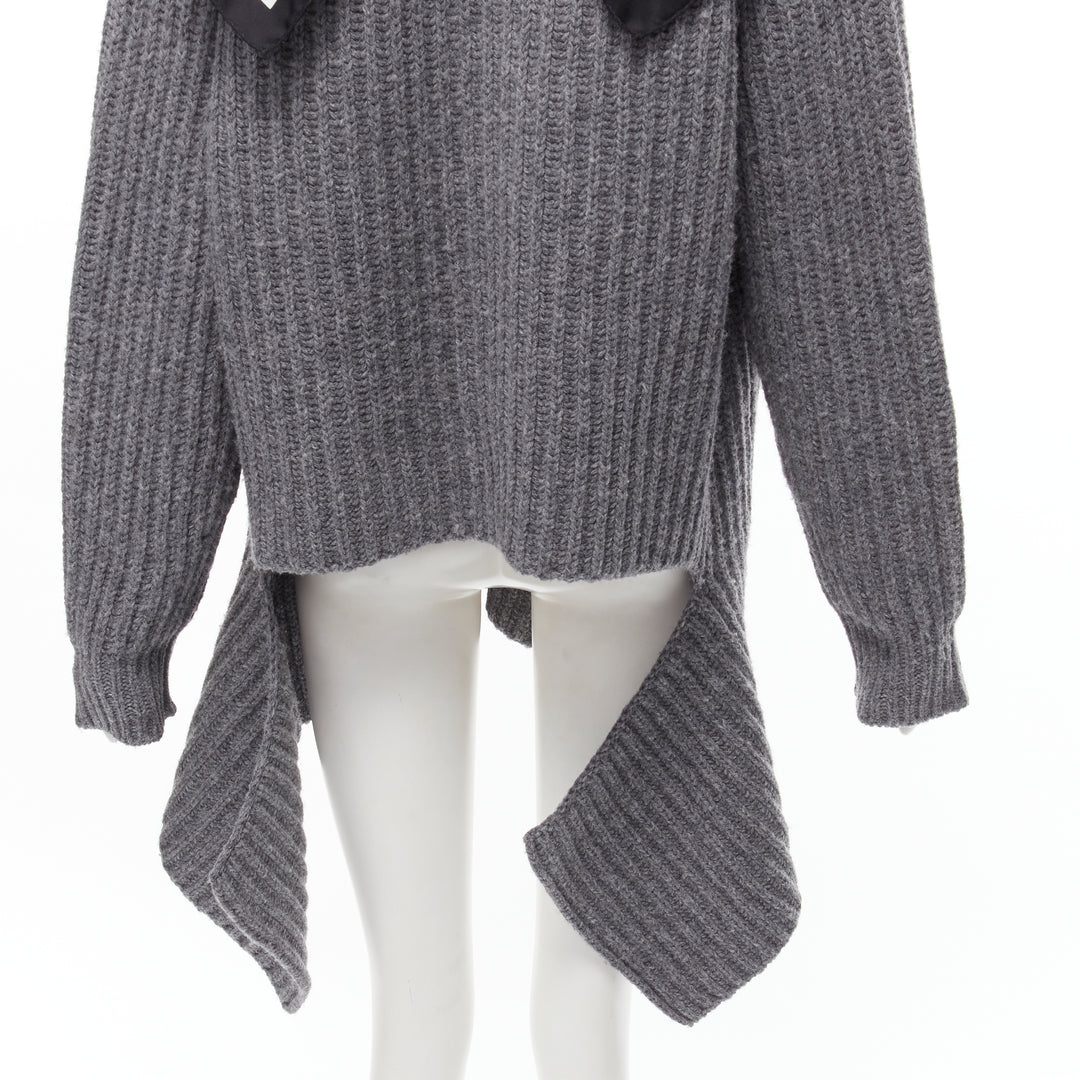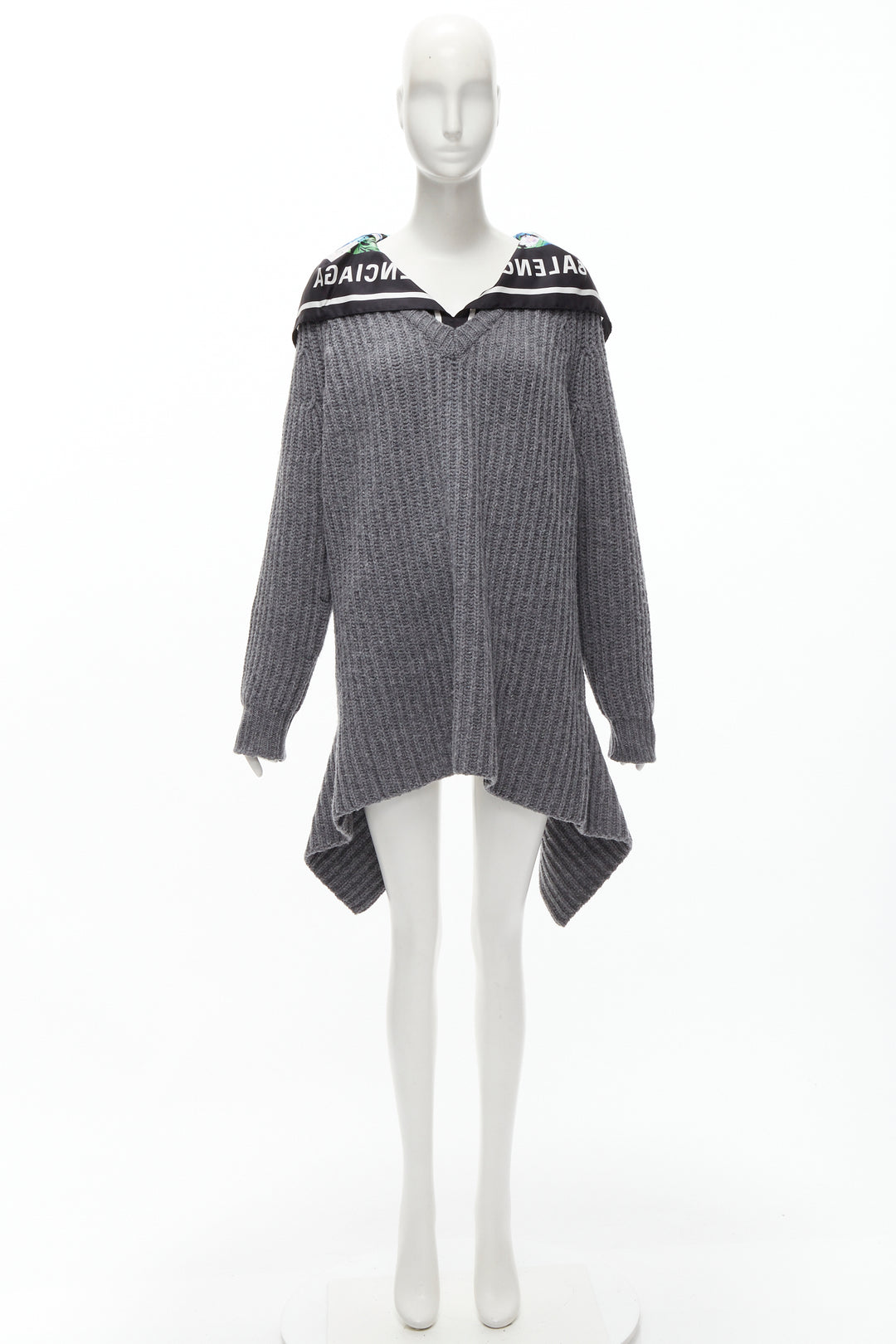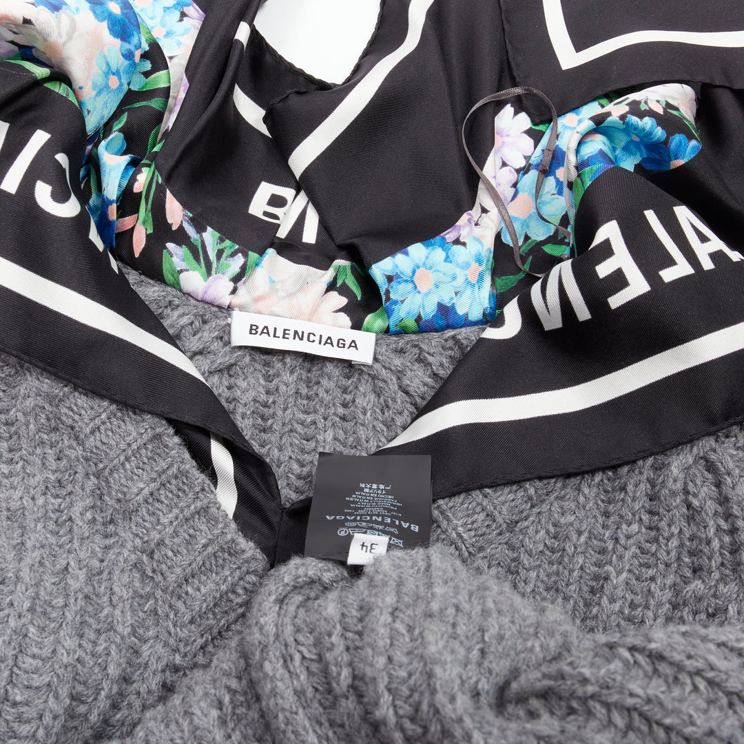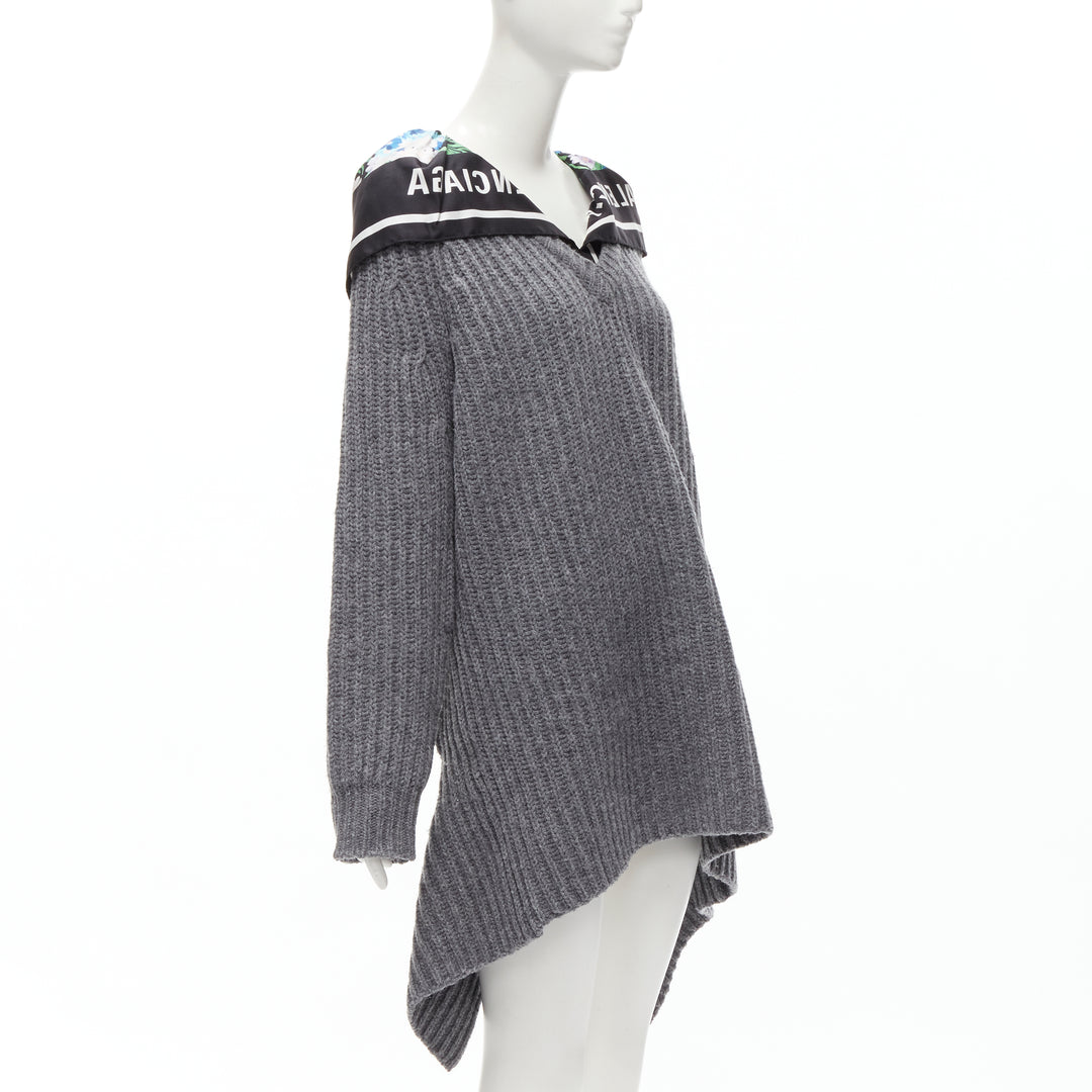 BALENCIAGA 2018 Demna grey wool silk scarf collar detached hem sweater FR34 XS
