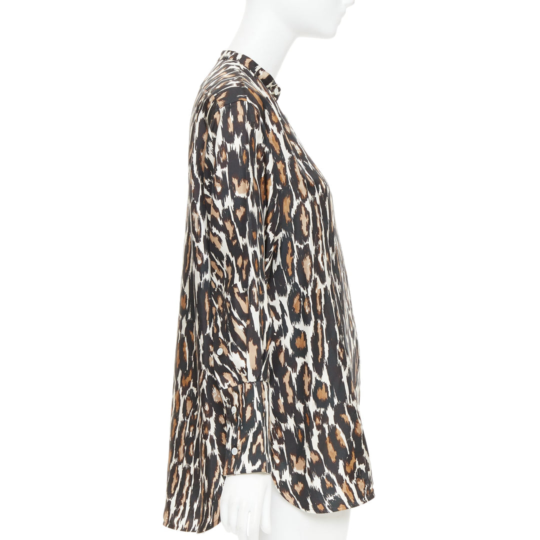 CALVIN KLEIN 205W39NYC Raf Simons 100% silk brown black leopard print shirt US0 XS