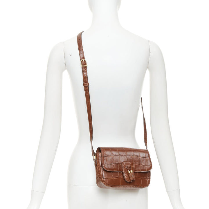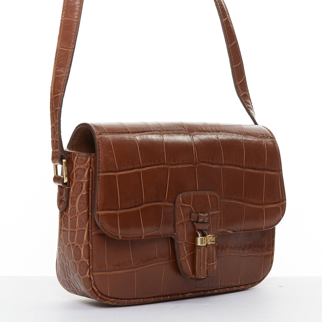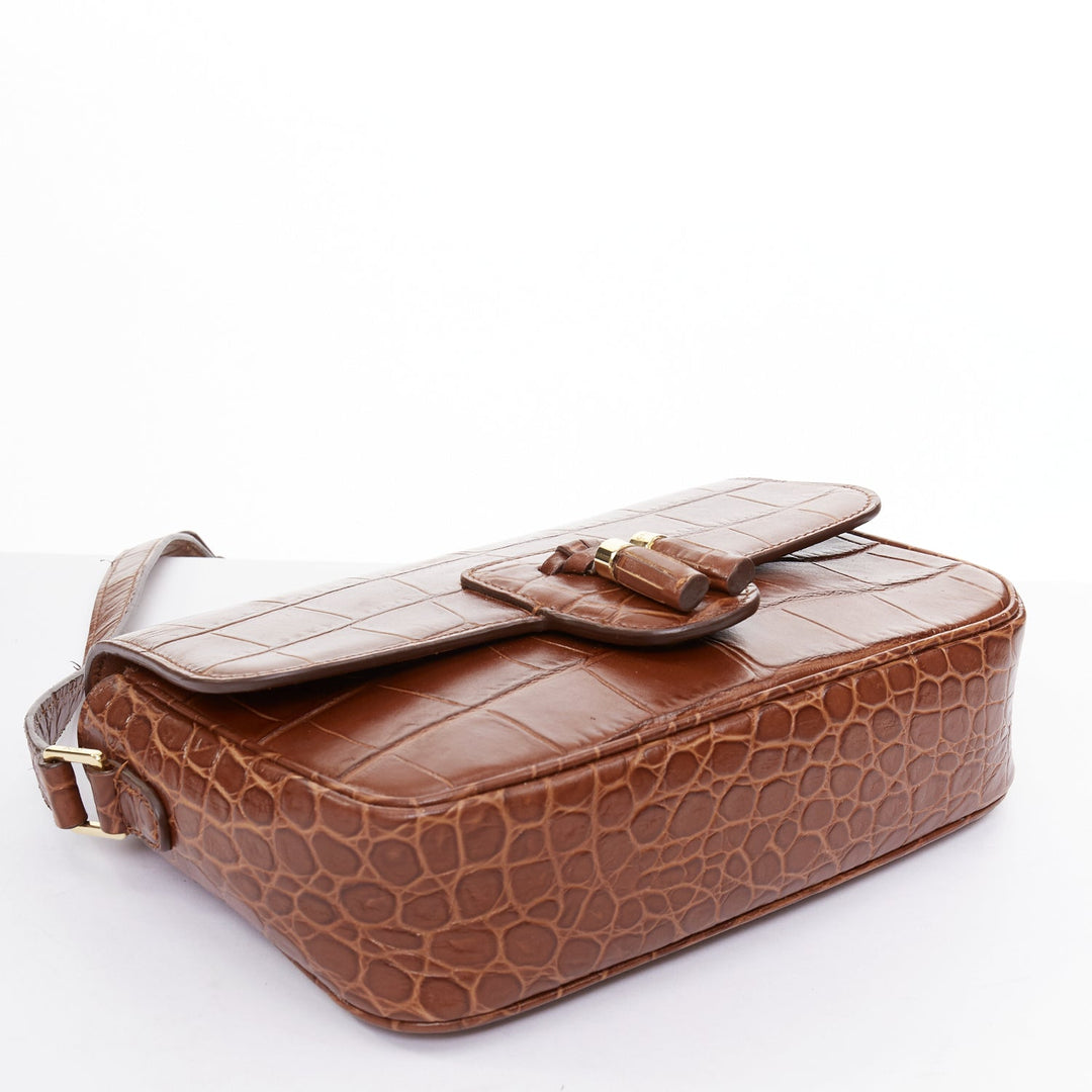 CELINE Medium Tassel brown embossed cow hide leather fringed crossbody bag