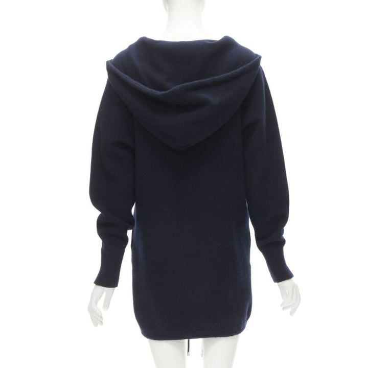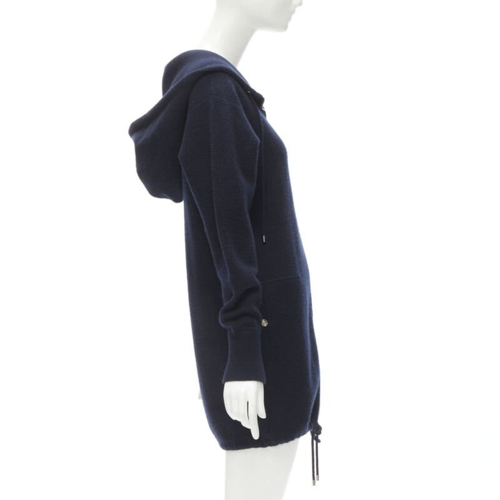 CHANEL 100% cashmere navy silver CC zip up hooded sweater FR34 XS