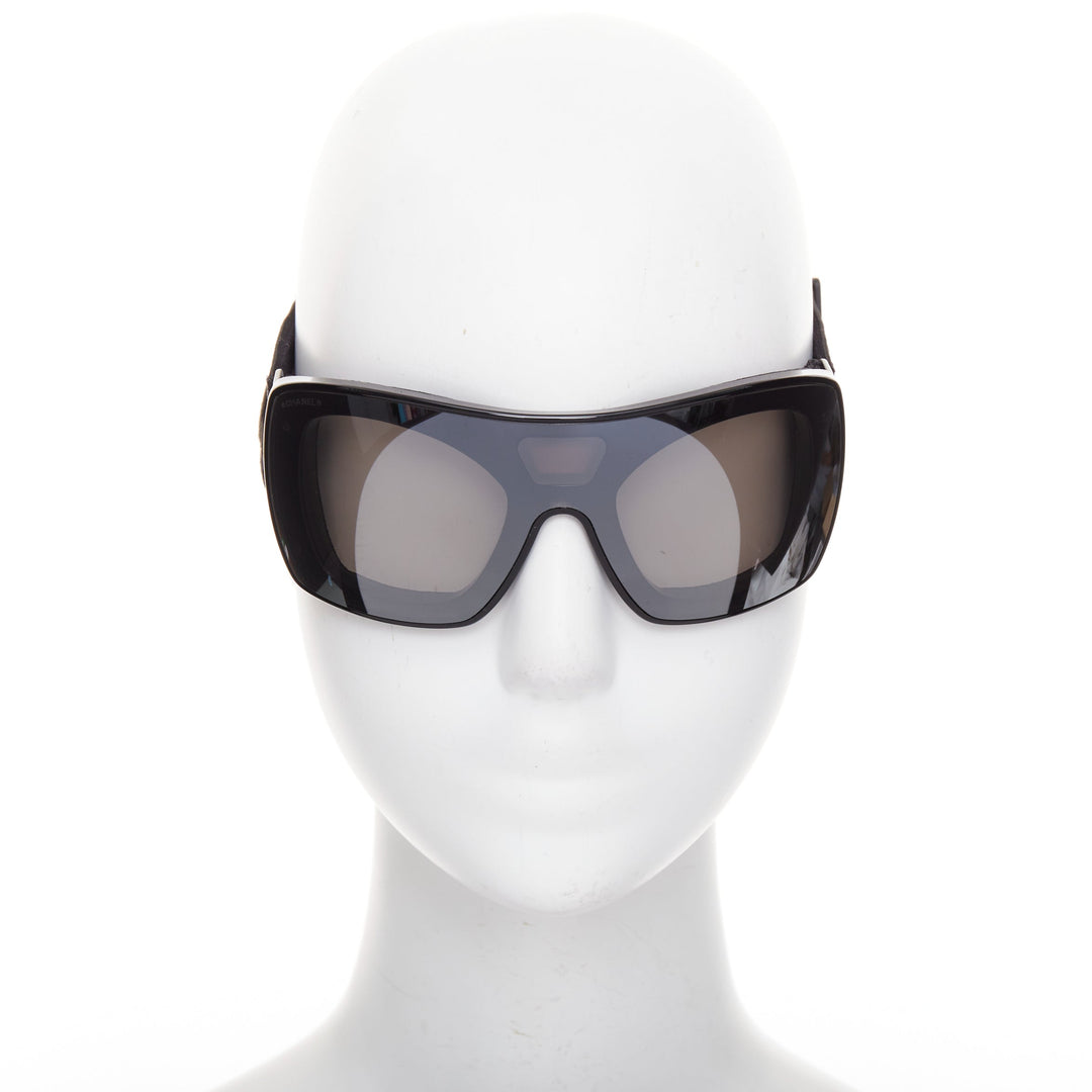 CHANEL black acetate technical shield ski goggles sunglasses