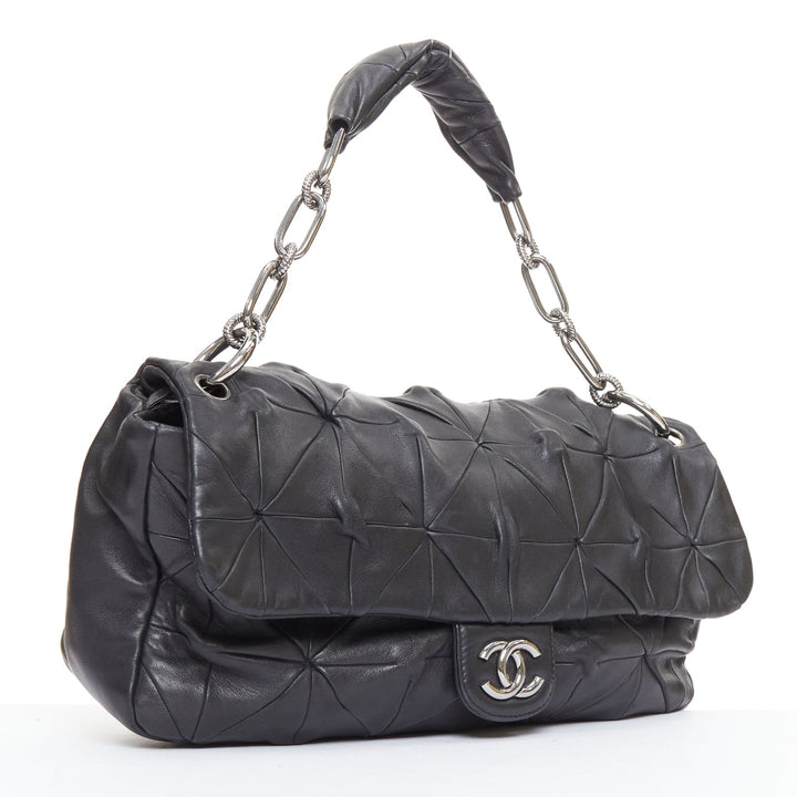CHANEL Soft Squares Origami black leather silver CC logo chain shoulder flap bag