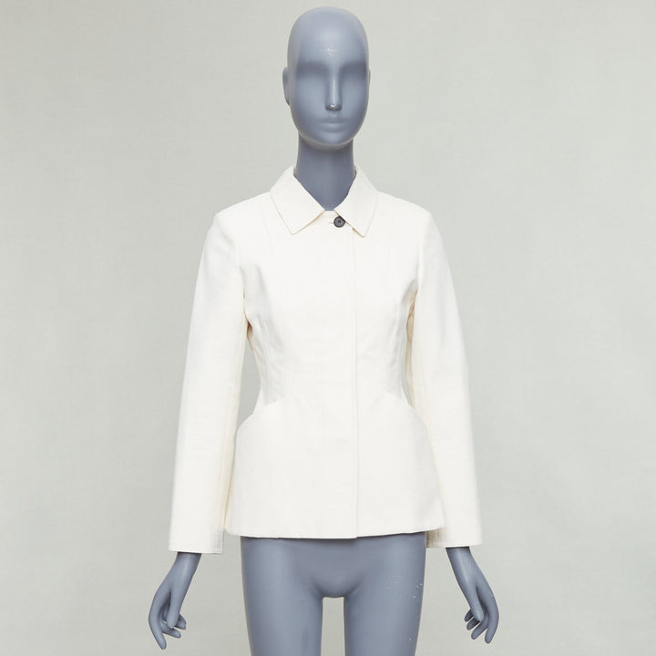 CHRISTIAN DIOR Bar Jacket cream cotton blend canvas contour jacket FR36 S