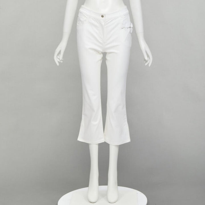 CHRISTIAN DIOR John Galliano Y2K crystal 3D petal cropped flare jeans