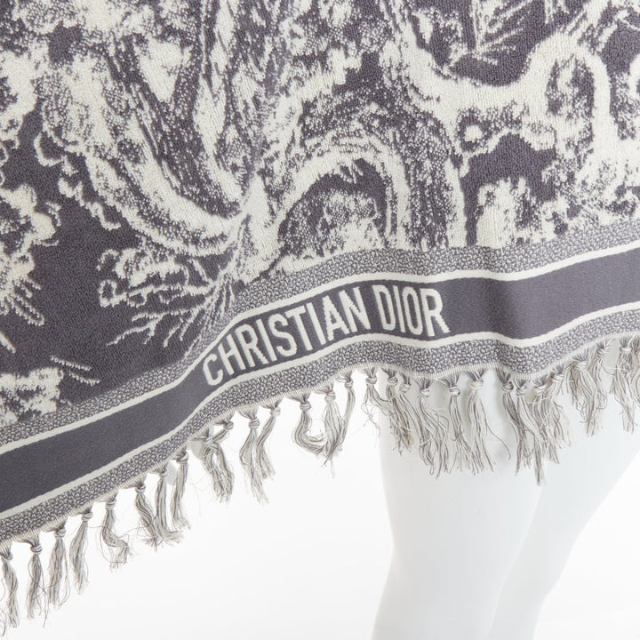 CHRISTIAN DIOR Toile de Jouy ivory grey reverse cotton big beach towel