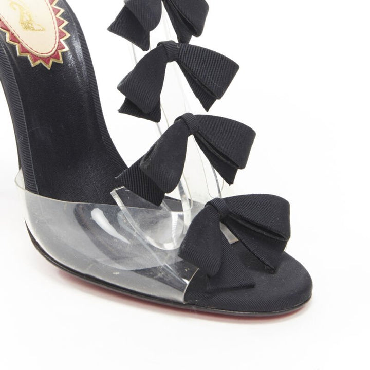 CHRISTIAN LOUBOUTIN Bow Bow black grosgrain ribbon PVC t-strap sandal heels EU36