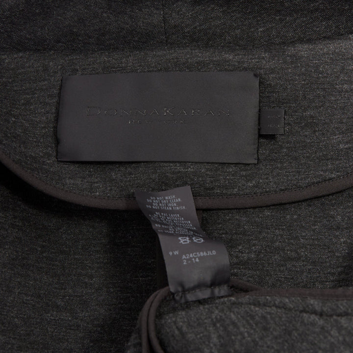 DONNA KARAN dark grey viscose quilted waterfall drape front coat US14 XXL